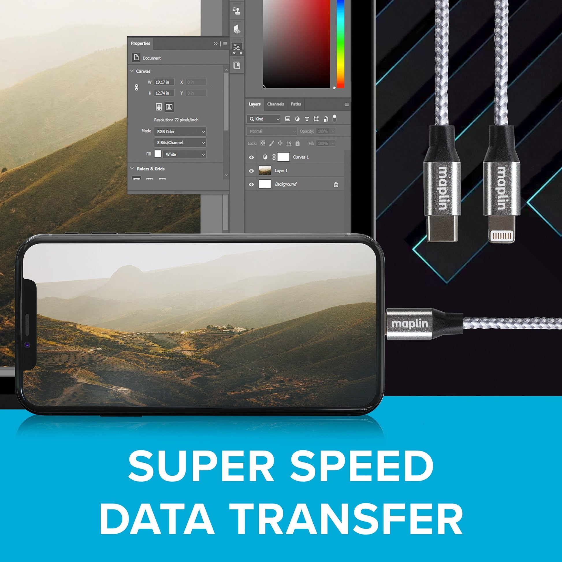 The Maplin Lightning to USB-C 20W High Speed Braided Cable has a TPE Sheath delivering the very highest quality connection for your devices for super fast charging and super speed data transfer. This cable is capable of 20 Watt charging and super speed data transfer from your Apple Lightning-enabled device. Connect to your PC for charging and data transfer, or to a USB-C power adapter for charging only.