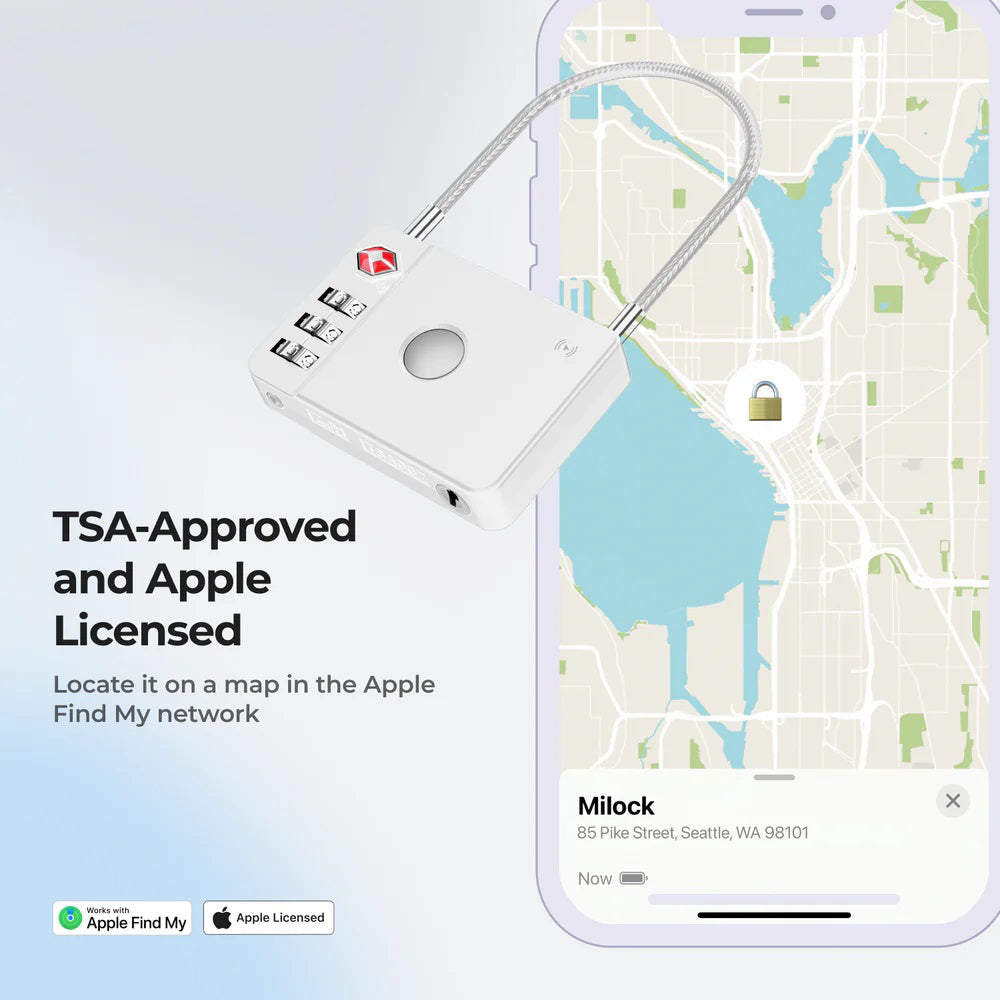 The MaplinMiLi MiLock iOS Compatible Combination Padlock Item Locator is the Ultimate Travel Companion. It is the world's first and only TSA approved and Apple Find My network lock. Engineered for enduring performance, MiLock features replaceable CR2032 batteries, ensuring your lock remains reliable and functional over extended periods. Its waterproof design, certified up to IP65 standards, guarantees durability and reliability in any environment.