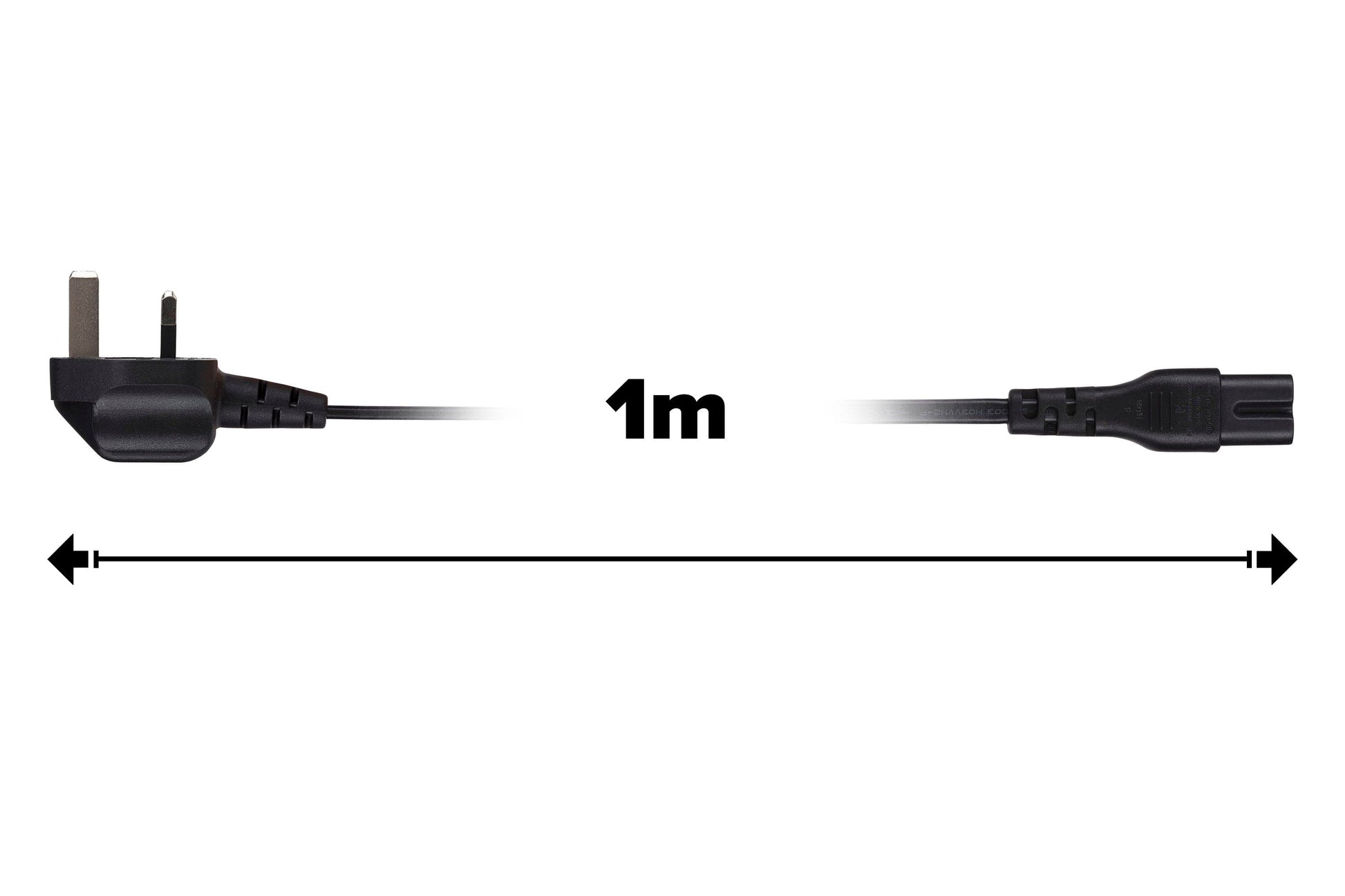 Maplin Power Lead IEC C7 Fig 8 2 Pin Plug to UK 3 Pin Mains Plug - 1m, 3 Amp Fuse