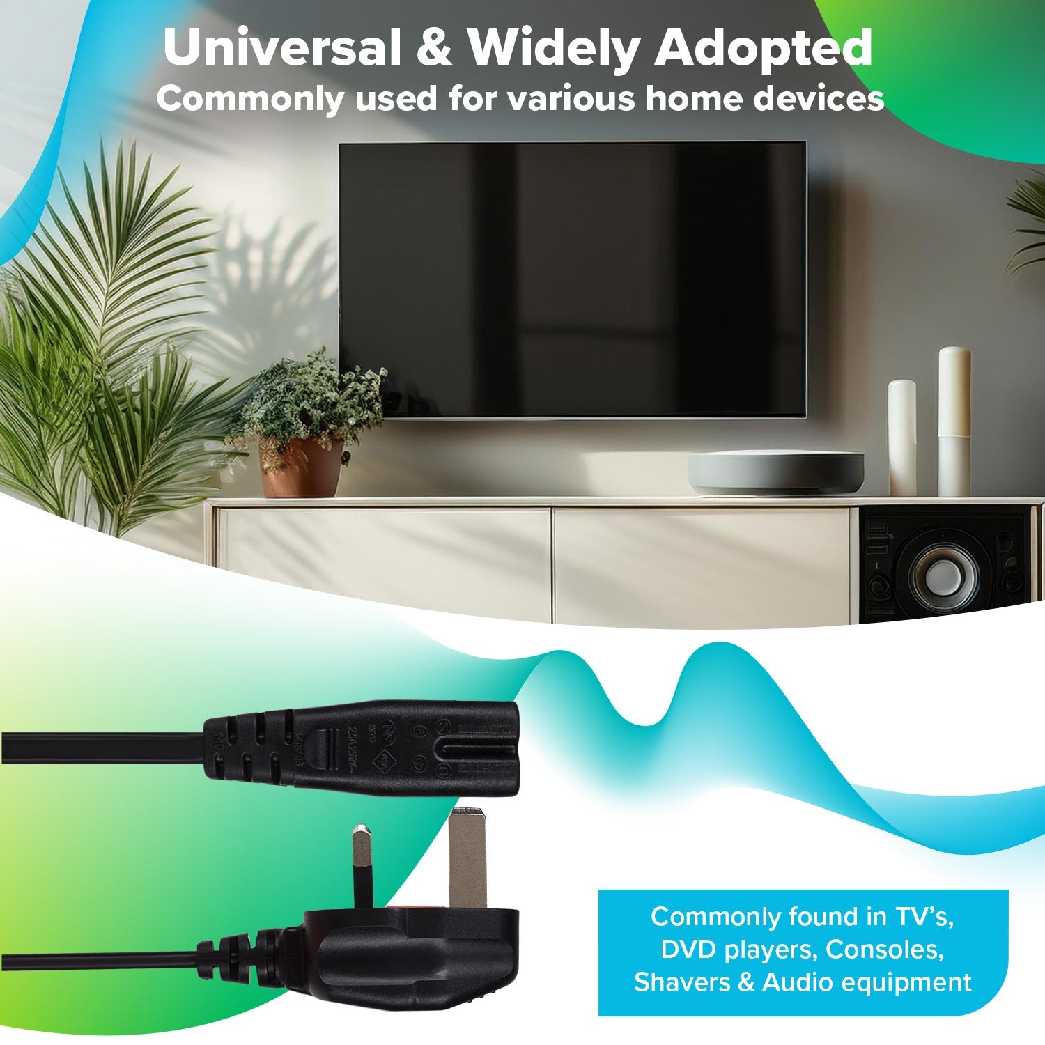 Maplin Power Lead IEC C7 Fig 8 2 Pin Plug to UK 3 Pin Mains Plug - 2m, 3 Amp Fuse