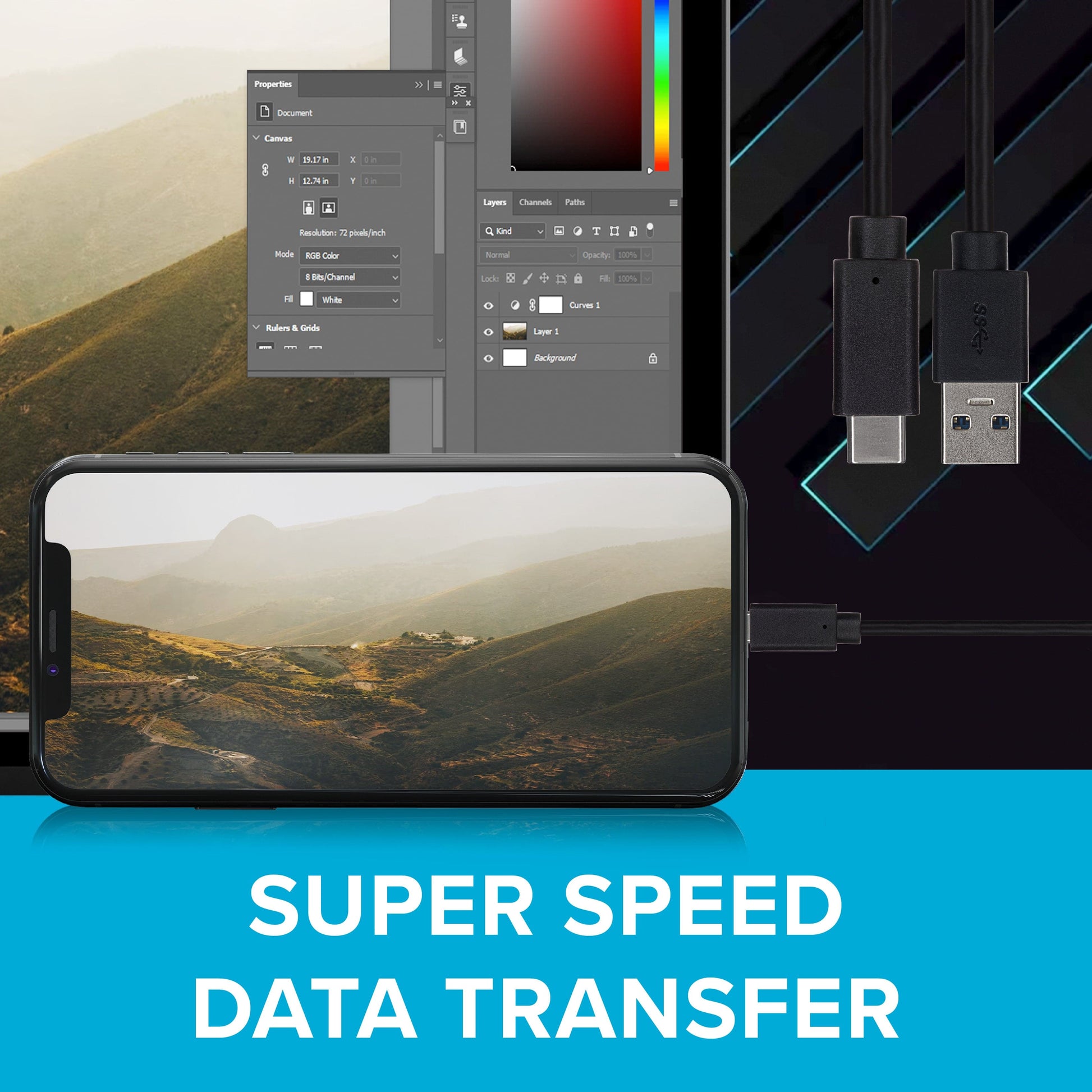Connect your USB-C smartphone or tablet to a USB-A computer port or wall charger with the Maplin Pro USB-C to USB-A 3.1 Gen1 5Gbps Super Speed Cable. Ideal for fast charging and speedy image, video and file transfers, the cable is designed for long lasting quality.