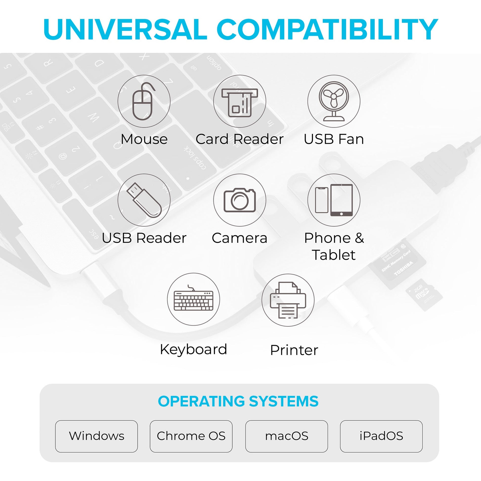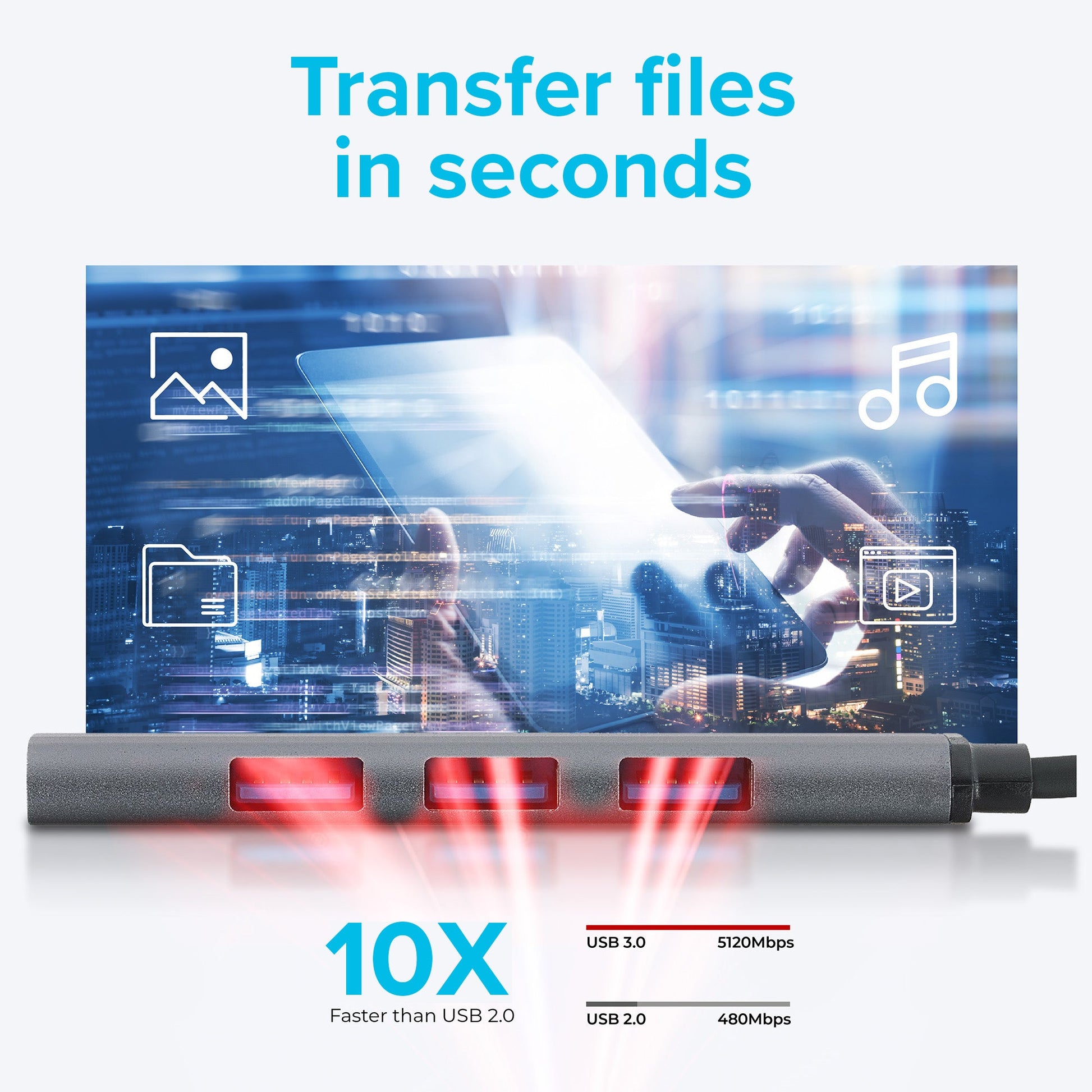 Using the 4K HDMI port, you can easily connect a high-resolution monitor and gain access to more screen space. With two additional USB 3.0 ports (USB Type-A) you can connect existing peripheral devices, like your mouse or flash drive. They deliver up to 5 Gbps data speeds. The adapter also has an SD and a MicroSD card reader slot so you can access all of your multimedia content. Both can work simultaneously.