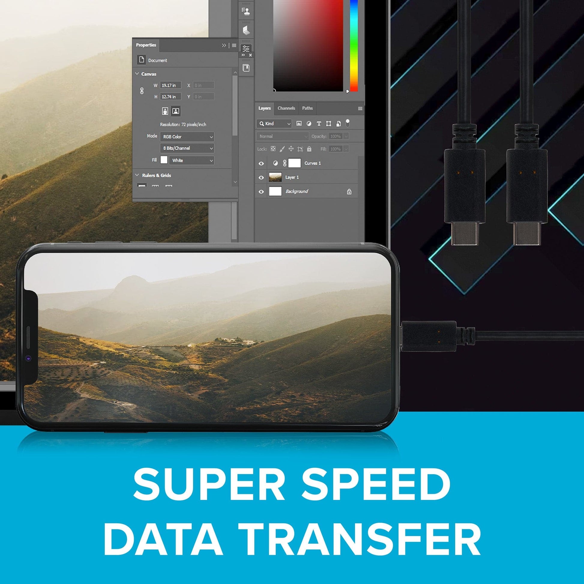 Connect your USB-C smartphone or tablet to a USB-C computer port or wall charger. The Maplin USB-C to USB-C 3.2 Gen2 100W 10Gbps Super Speed Cable provides super fast charging and speedy image, video and file transfers.