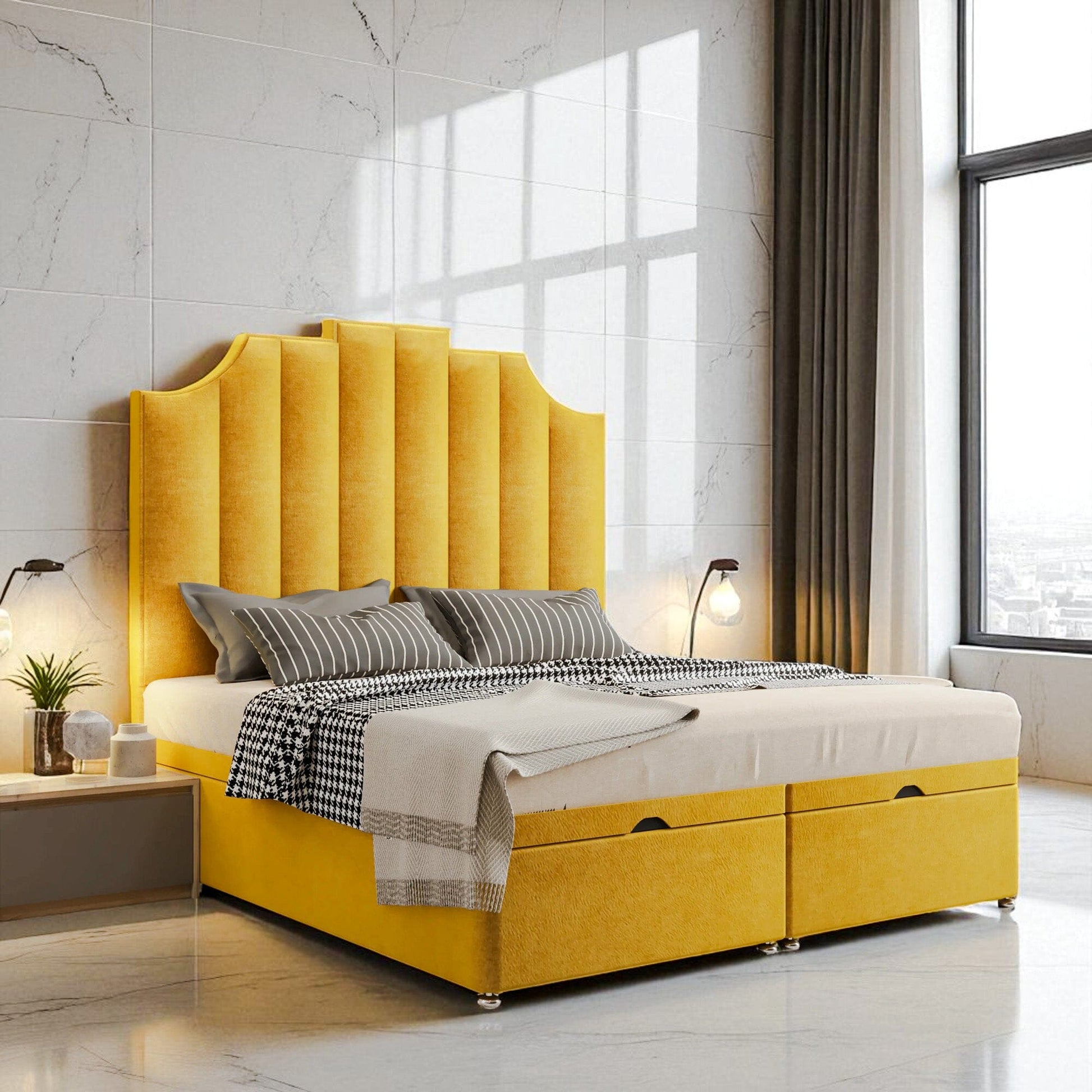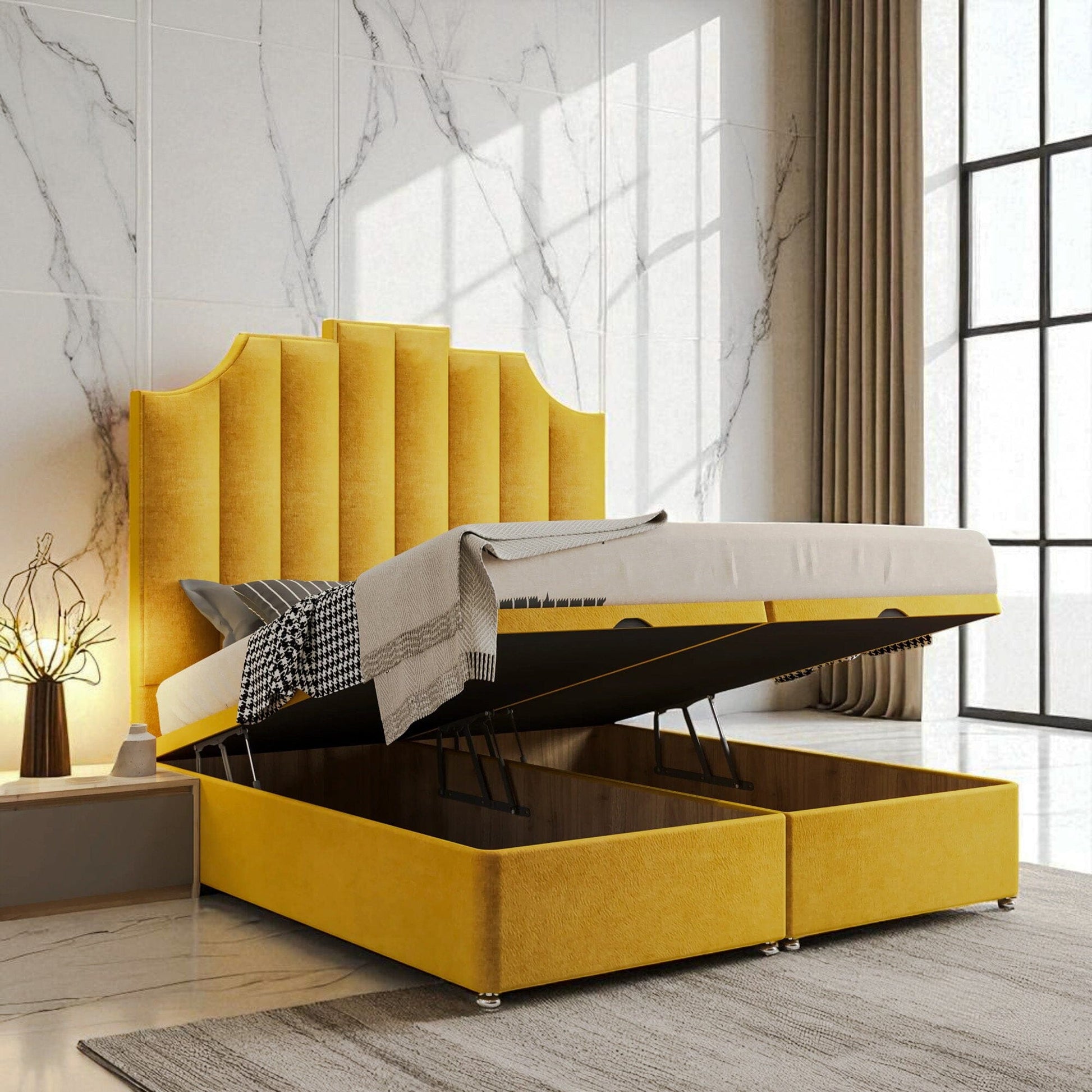 This luxurious Maravi Ottoman Divan Bed is exclusive to Divan Bed Warehouse, as part of our CloudLift Collection. Constructed from the highest quality British timber right here in Great Britain, it is presented here in a stylish and contemporary material, designed to be the perfect addition to your bedroom available in 50+ colours and many fabrics. The set includes a luxury mattress of your choice or you can just purchase the bed and Luxurious Floor Standing Headboard.