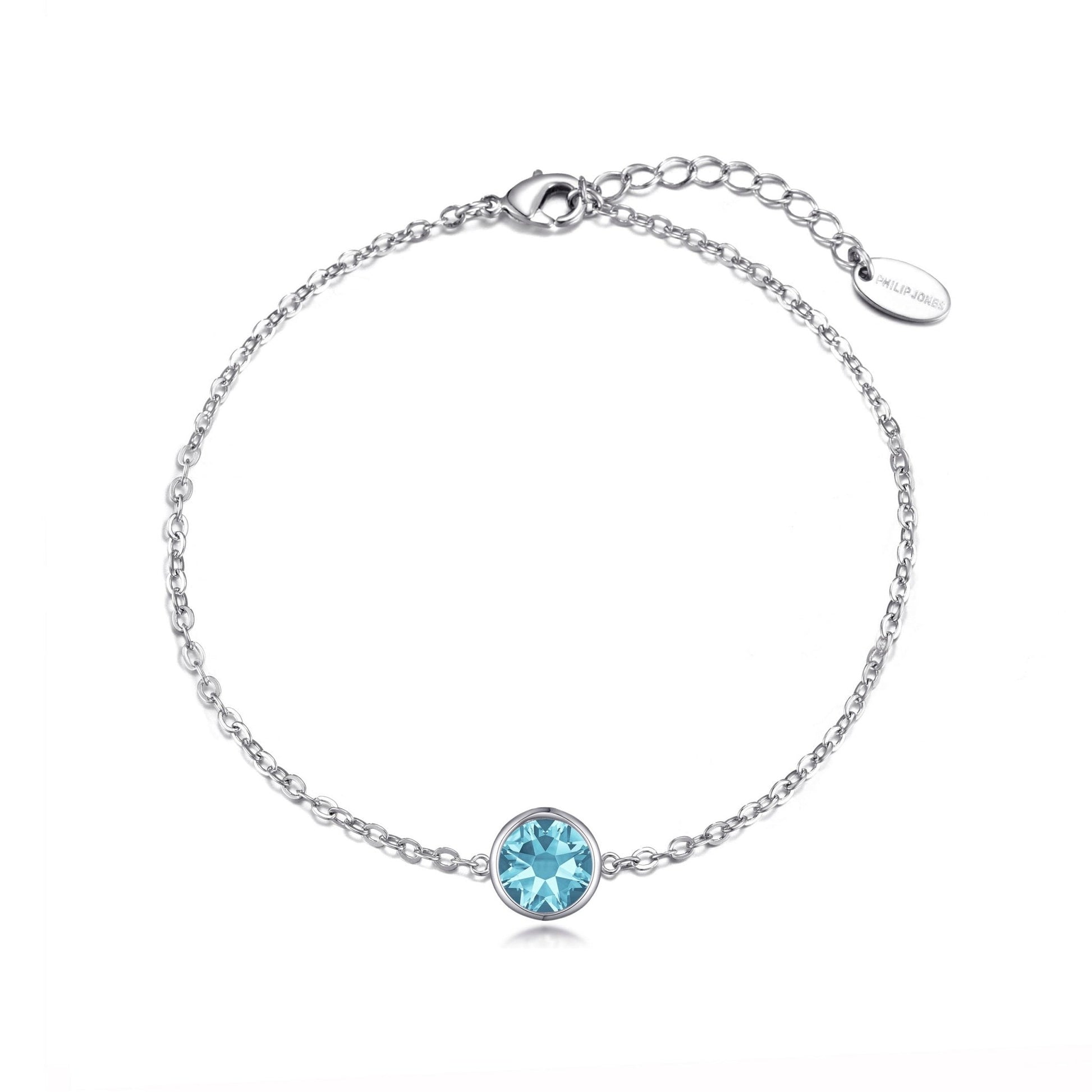 March (Aquamarine) Birthstone Anklet Created with Zircondia® Crystals