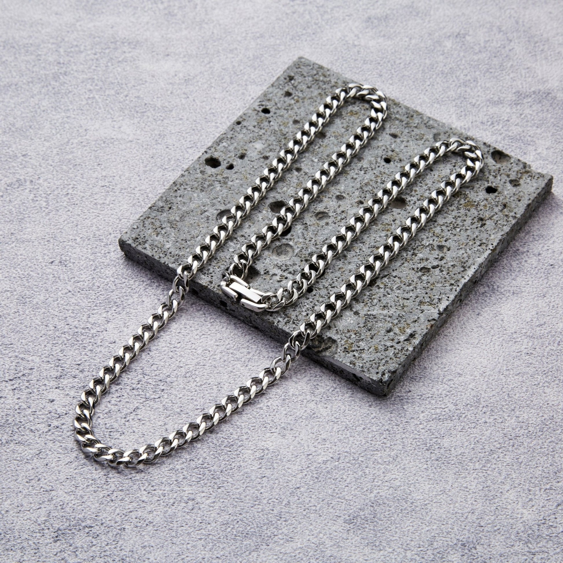 The Men's 6mm Stainless Steel 18-24 Inch Cuban Curb Chain Necklace by Philip Jones is the perfect blend of strength and sophistication. Crafted with hypoallergenic stainless steel, it boasts a high polish finish for ultimate style. Comes in a chic gift pouch, this polished necklace is perfect for any occasion.