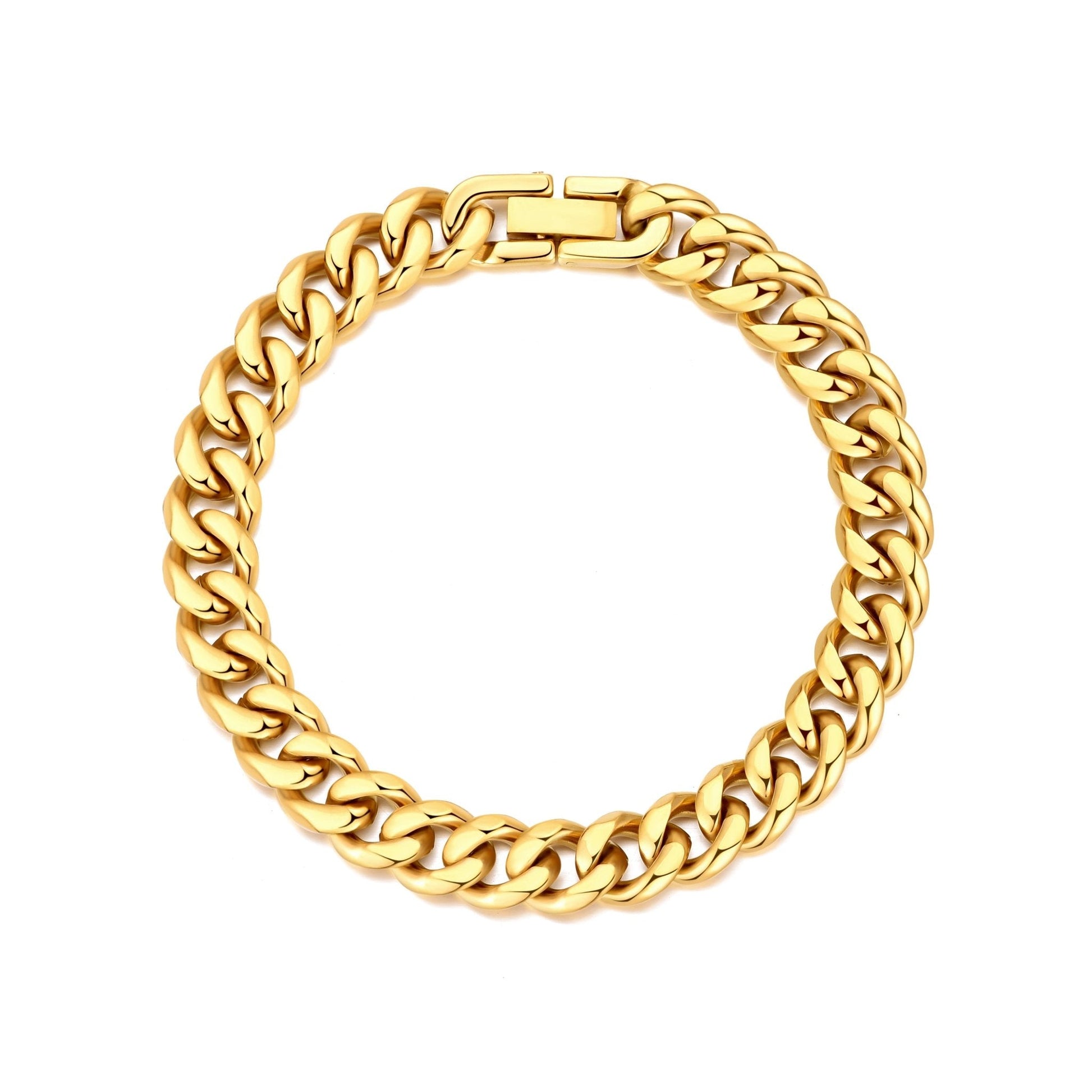 Make a strong, stylish statement with the Philip Jones Gold Plated Stainless Steel Curb Chain Bracelet. Crafted from durable gold plated stainless steel, this highly polished bracelet offers hypoallergenic, all-day comfort. With a 7.5-8.5 inch length and 9mm width, the fold over clasp closure ensures a secure fit. Plus, it comes packaged in a 9cm x 10cm gift pouch. Show your unique confidence today!