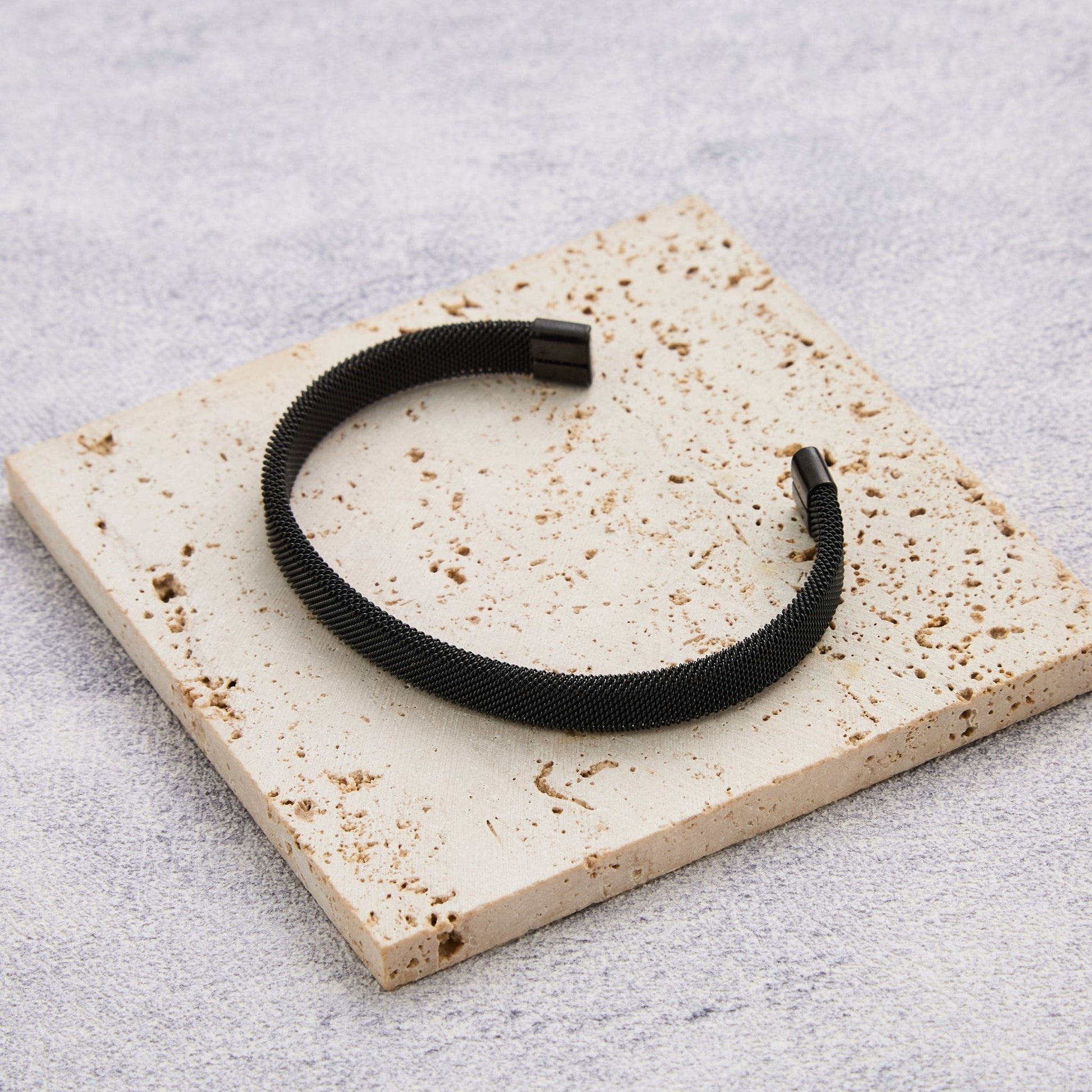 Men's Black Stainless Steel Mesh Cuff Bracelet