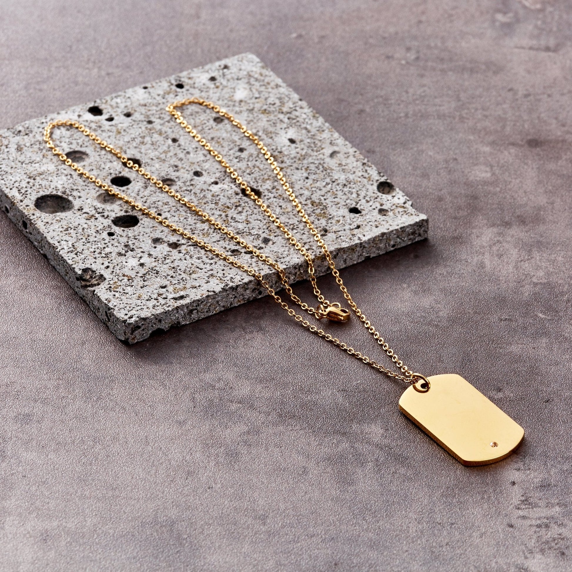 Men's Gold Plated Steel Dog Tag Necklace Created with Zircondia® Crystals