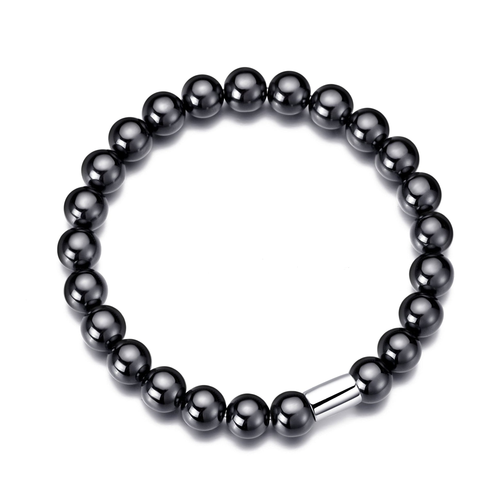 Men's Hematite Round Beaded Gemstone Stretch Bracelet