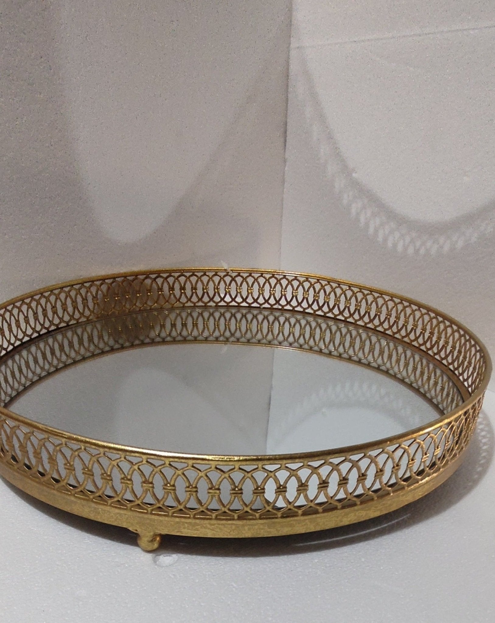 Pure Luxury. This round shape serving tray is sure to impress your guests. Finished with a mirror base and brass metal. Beautifully crafted and very strong to last many years.