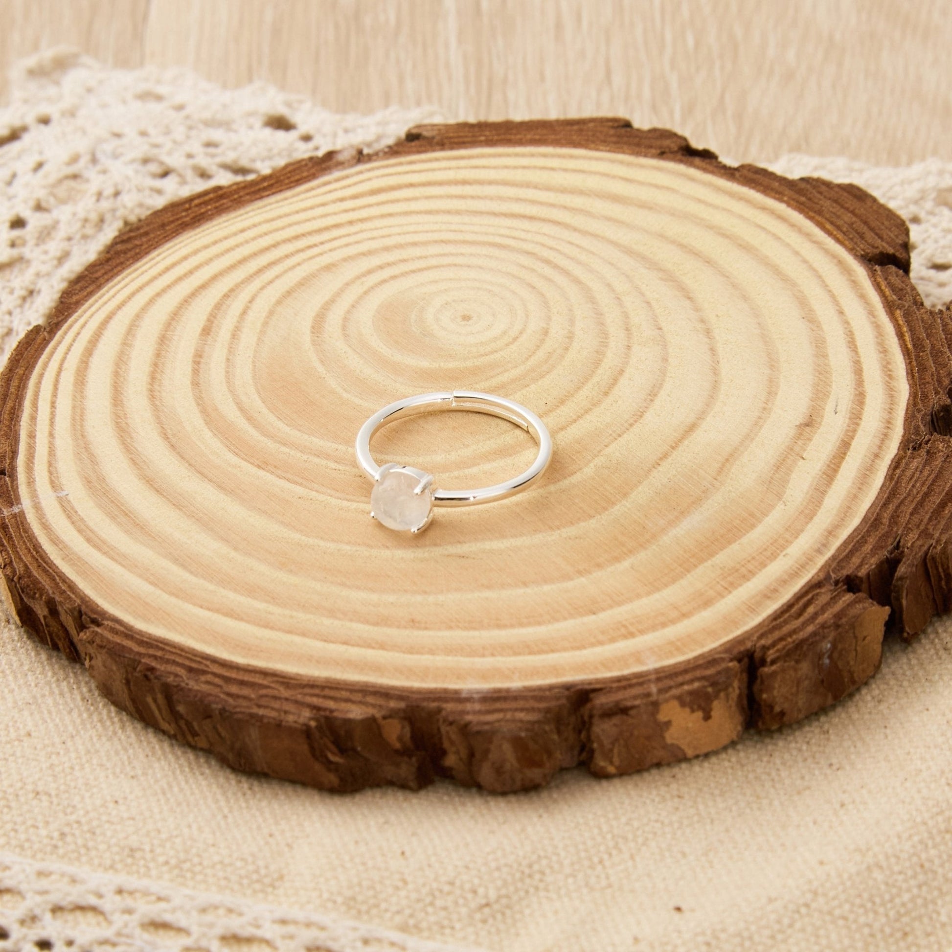 This stunning Moonstone Adjustable Ring features genuine gemstones and a silver plated base, providing both beauty and hypoallergenic properties. Its adjustable size and elegant design make it a perfect addition to any jewelry collection. The round, white moonstone is 6mm in size and adds a touch of sophistication. Each ring comes in a beautiful gift pouch measuring 7cm x 5cm.