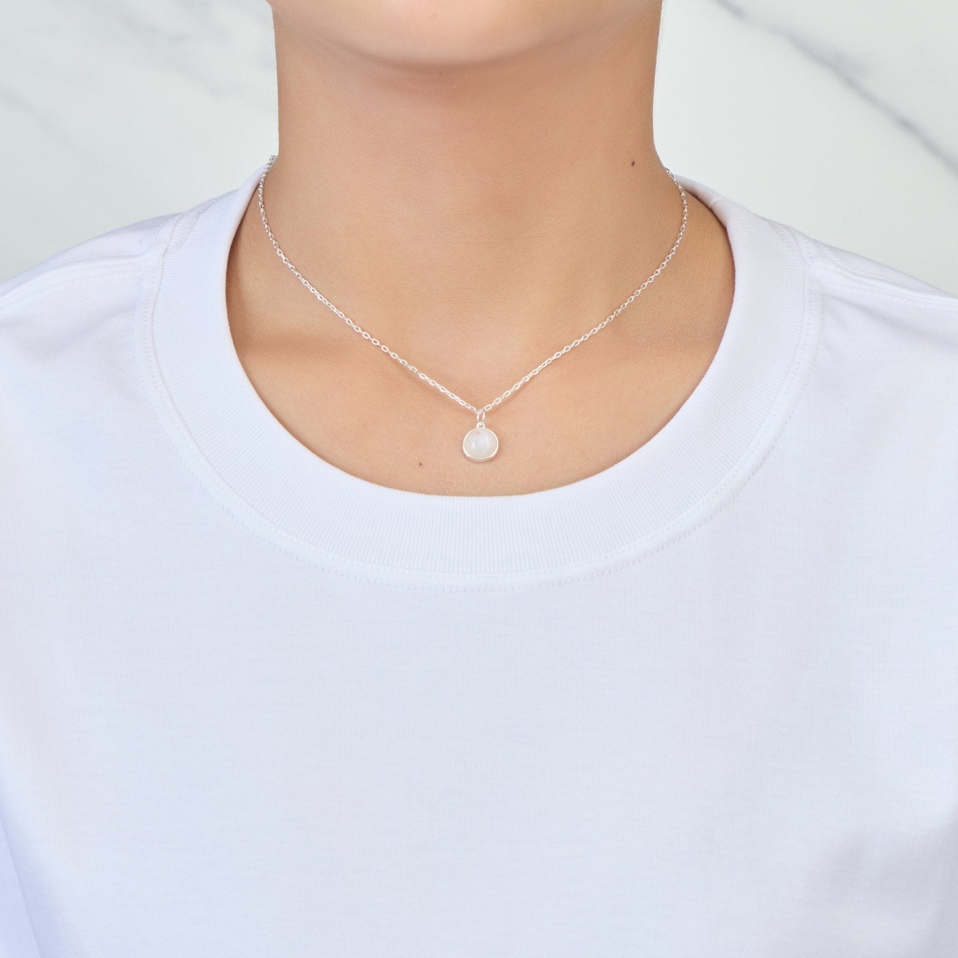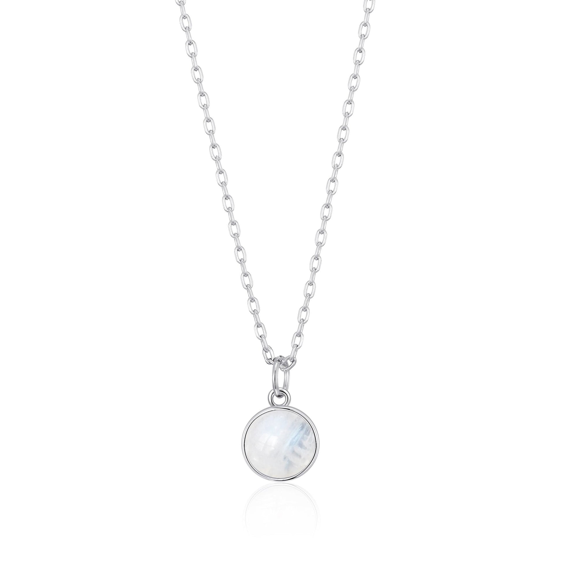 Enhance your look with this stunning Moonstone Necklace, featuring a polished silver finish and hypoallergenic materials. The pendant measures 9.5mm in both width and height, with a beautiful round moonstone in an opalescent colour. The necklace has a length of 43cm with a 5cm extender chain and a weight of 3.1g. Complete with a gift pouch and quote card, this necklace is a perfect way to add a touch of style and inspiration to your wardrobe.