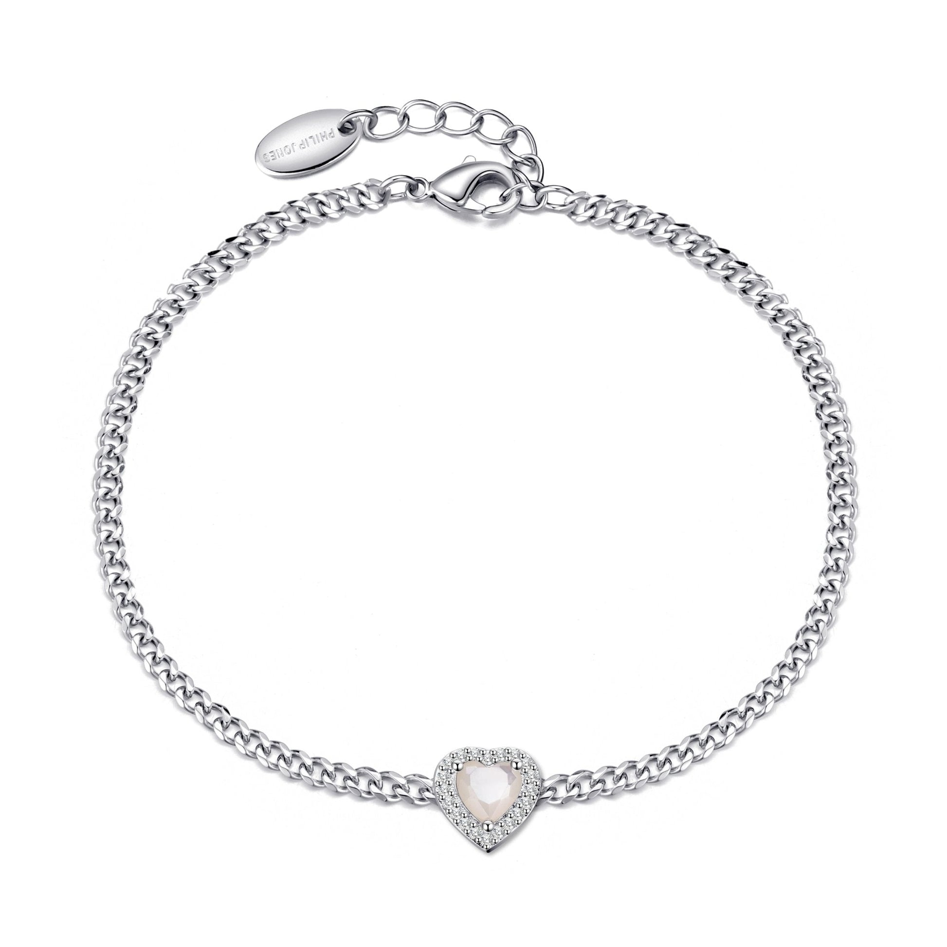 Experience the luxurious beauty of genuine gemstones with our Mother Of Pearl Heart Gemstone Bracelet. Made with love and precision, this bracelet features silver plated hypoallergenic details that will keep your skin feeling comfortable. The perfect addition to any outfit, it's adorned with sparkling Zircondia® crystals that will inspire awe and admiration. Carry it with you to radiate positive energy and style.