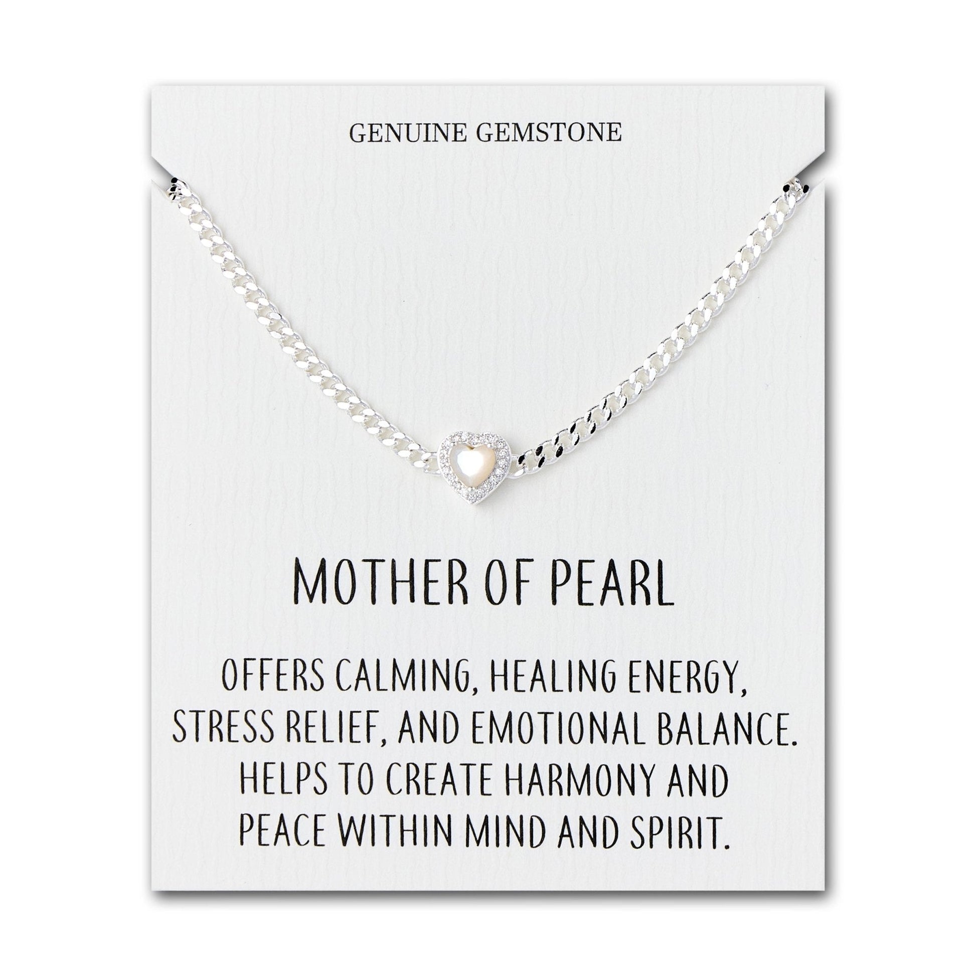 Mother Of Pearl Heart Gemstone Bracelet with Quote Card Created with Zircondia® Crystals