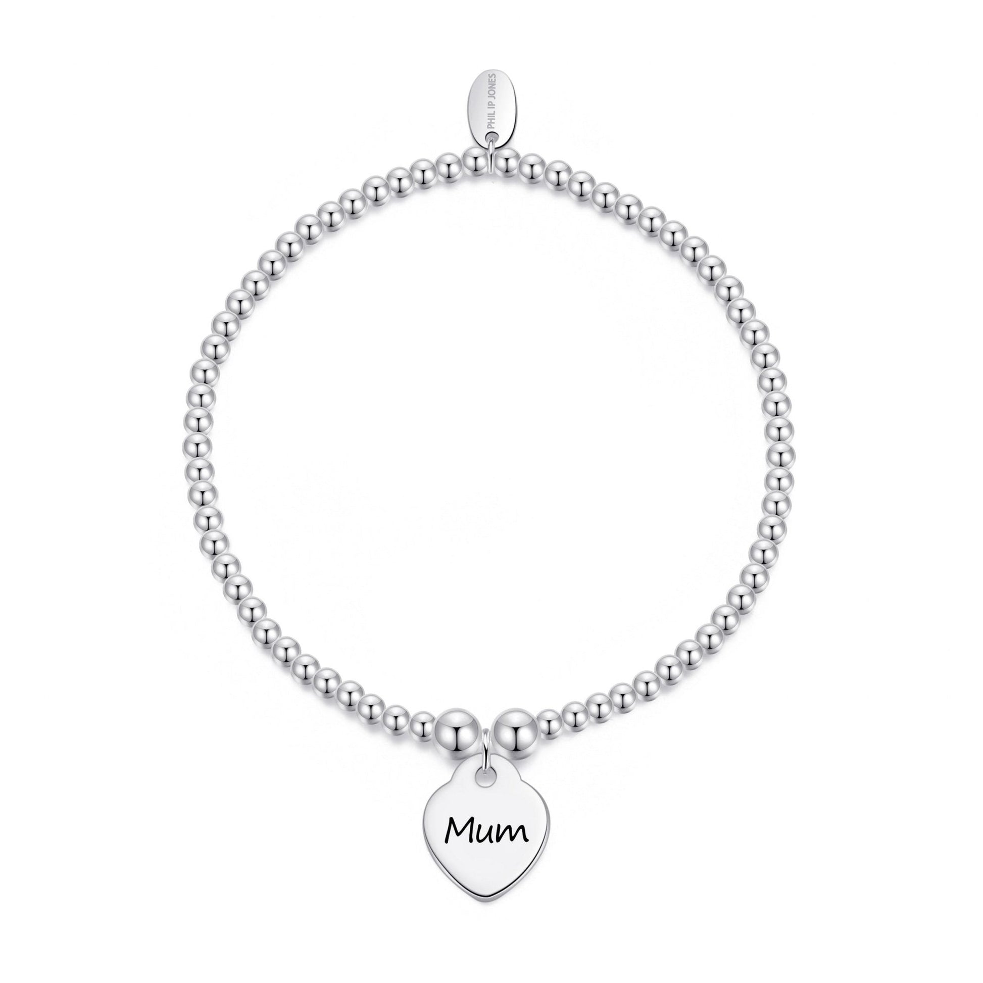 This stunning Mum Heart Charm Bracelet is crafted with a silver plated high polished finish, making it hypoallergenic and perfect for sensitive skin. The beaded design features a charming heart charm with dimensions of 12mm, and a stretch bracelet length of 17.8cm. Packaged in a beautiful gift pouch measuring 9cm x 10cm.