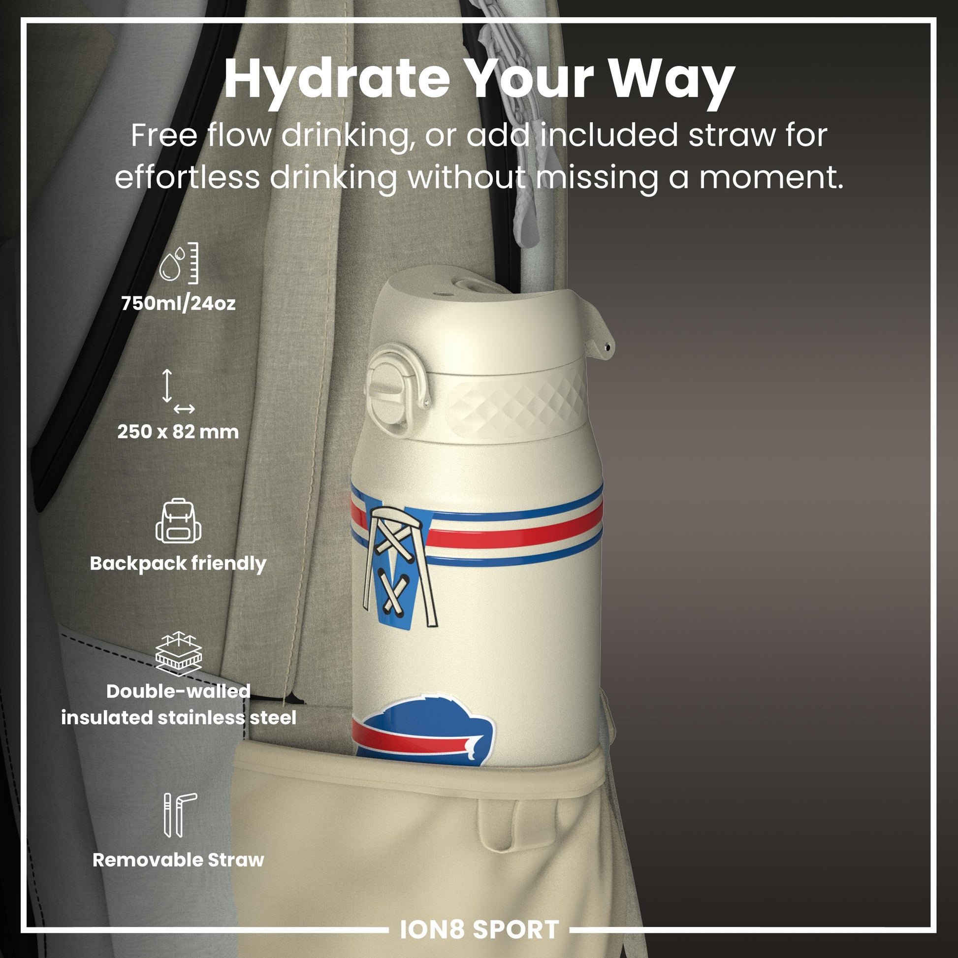 NFL x ION8 Insulated Steel Water Bottle, NFL Bills, 750ml (24oz)