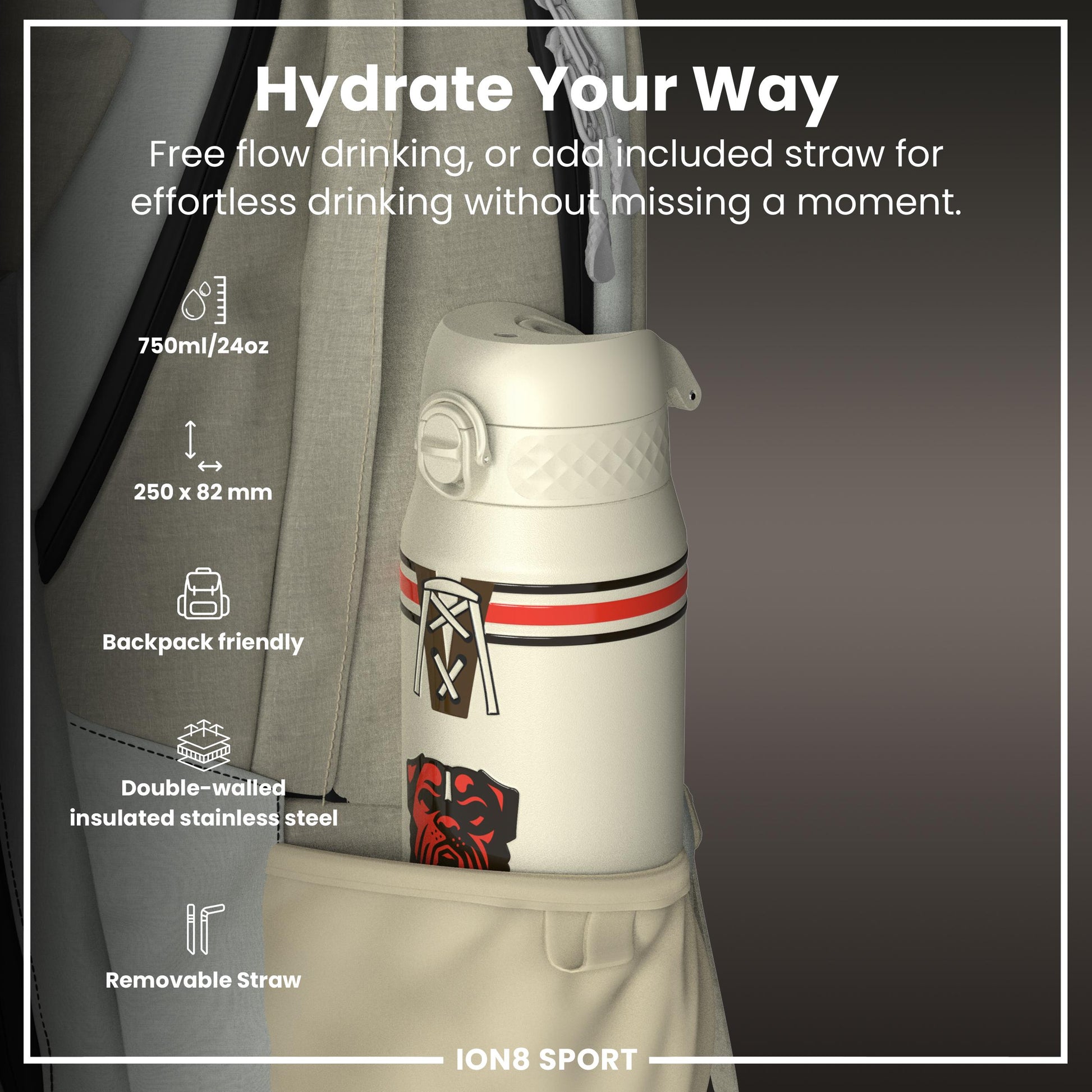NFL x ION8 Insulated Steel Water Bottle, NFL Browns, 750ml (24oz)