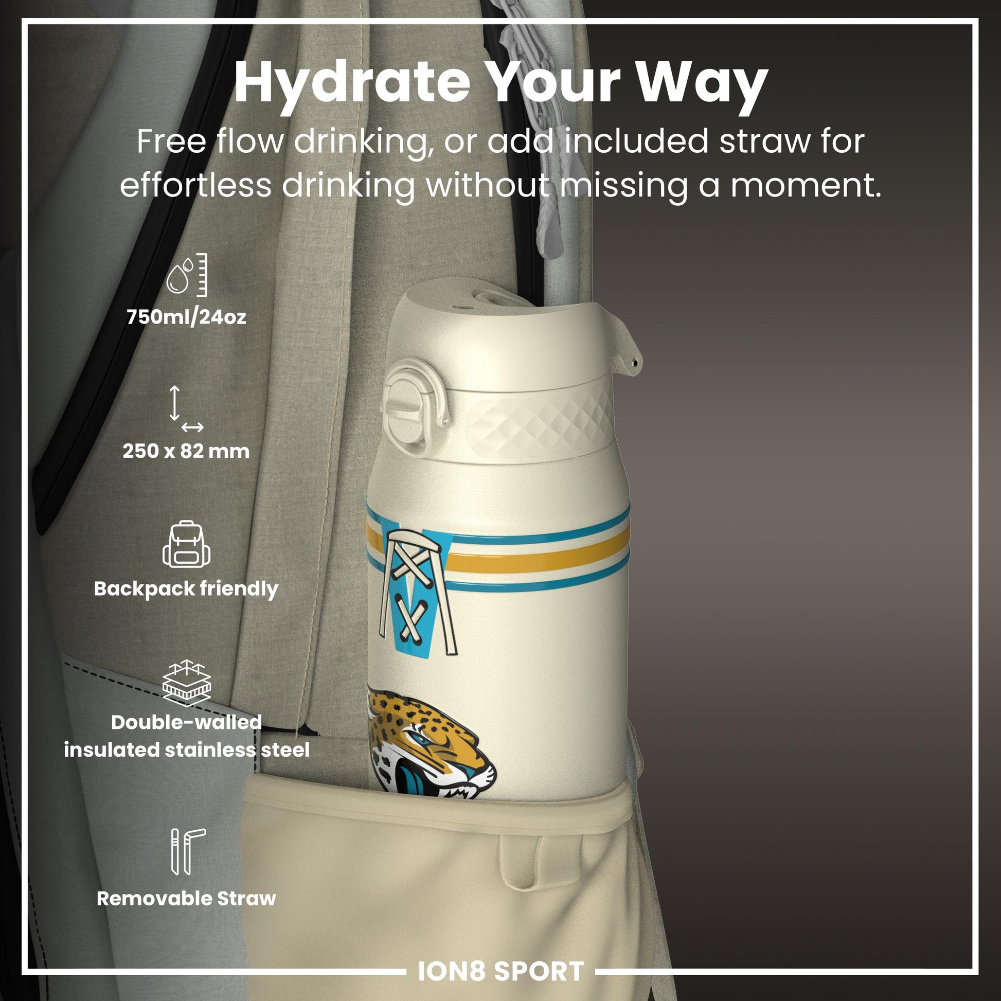 NFL x ION8 Insulated Steel Water Bottle, NFL Jaguars, 750ml (24oz)I8TS750NFLTBJAX