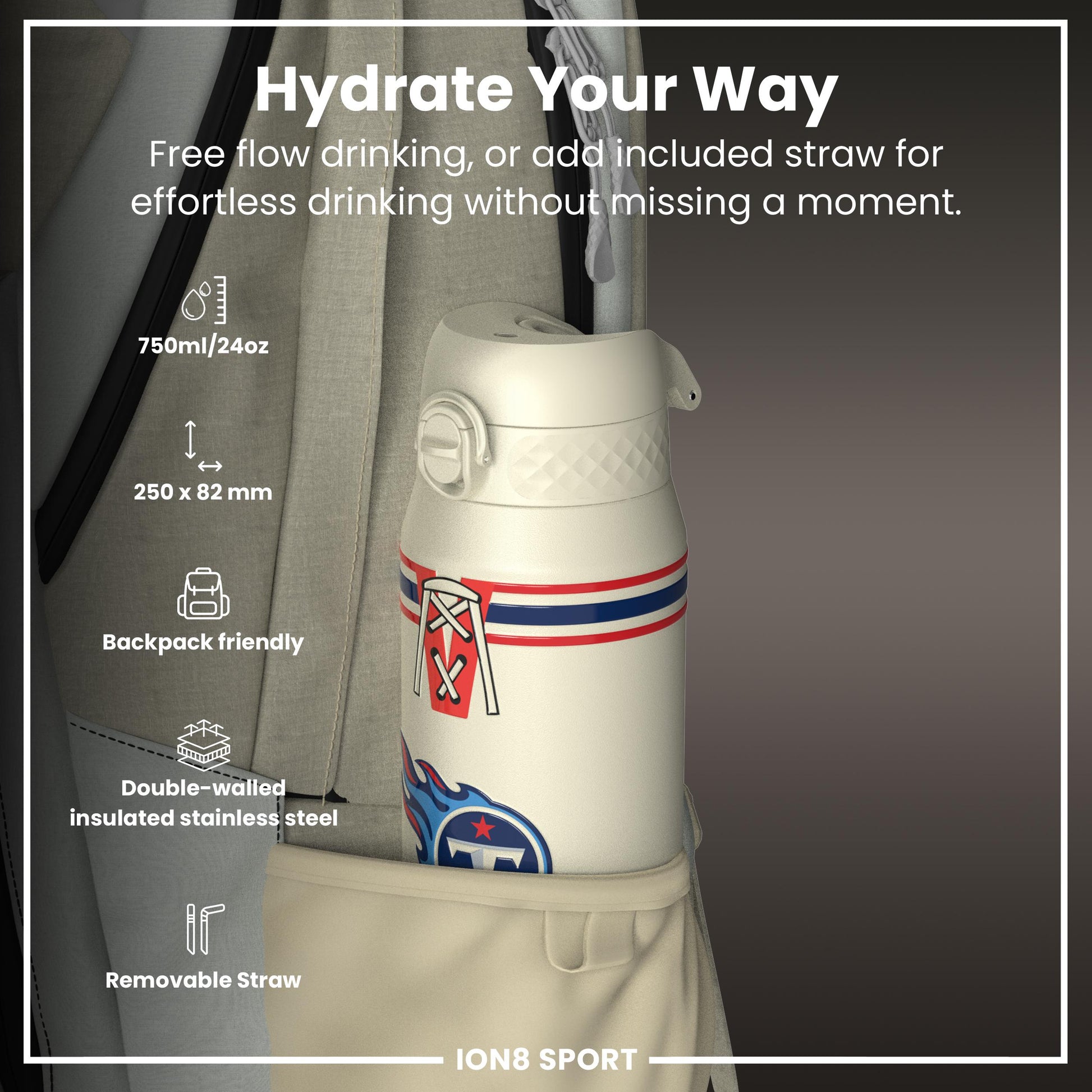 NFL x ION8 Insulated Steel Water Bottle, NFL Titans, 750ml (24oz)I8TS750NFLTBTEN