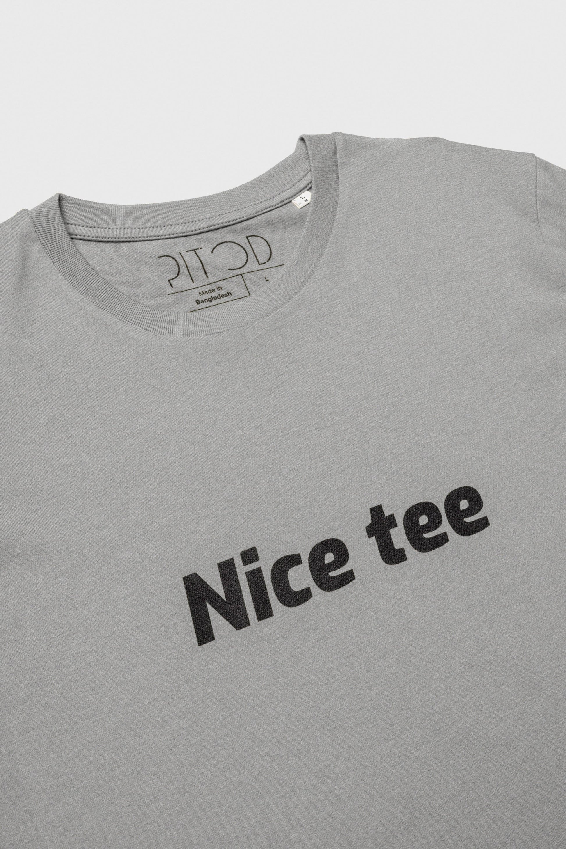 Step up your wardrobe game with this Nice Tee T-Shirt. Made from 100% organic ring-spun cotton, this unisex grey t-shirt is a total must-have. It's not only high-quality and super comfy but also eco-friendly. This shirt is made from 100% organic ring-spun cotton, making it a great addition to your wardrobe if you're looking to reduce your carbon footprint. It's designed to be a unisex shirt, which means that it's a great gift for all genders. The single jersey medium fit is both comfortable and stylish. And the 'nice tee' wording on the front of the shirt makes it a great conversation starter. Get your Nice Tee T-Shirt today and show the world how fashion and sustainability can go hand in hand.