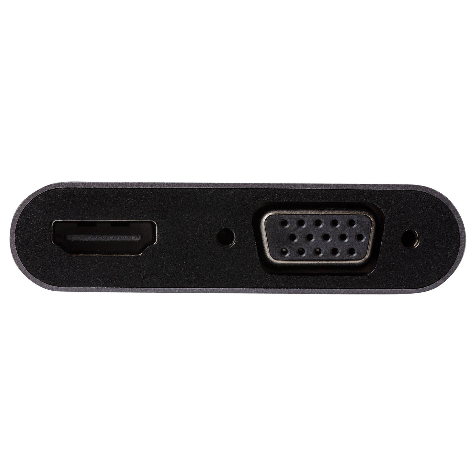 A plug-and-play solution for connecting your notebook to an external display with your choice of HDMI, VGA or Audio outputs. Supports Mirror mode on monitors. SST (Single Stream Transport) mode supported so an external monitor can be used, as extra display space or to show the same view on an additional screen. The 3.5mm Analogue Audio Output means you can also connect your headphones through the adapter.