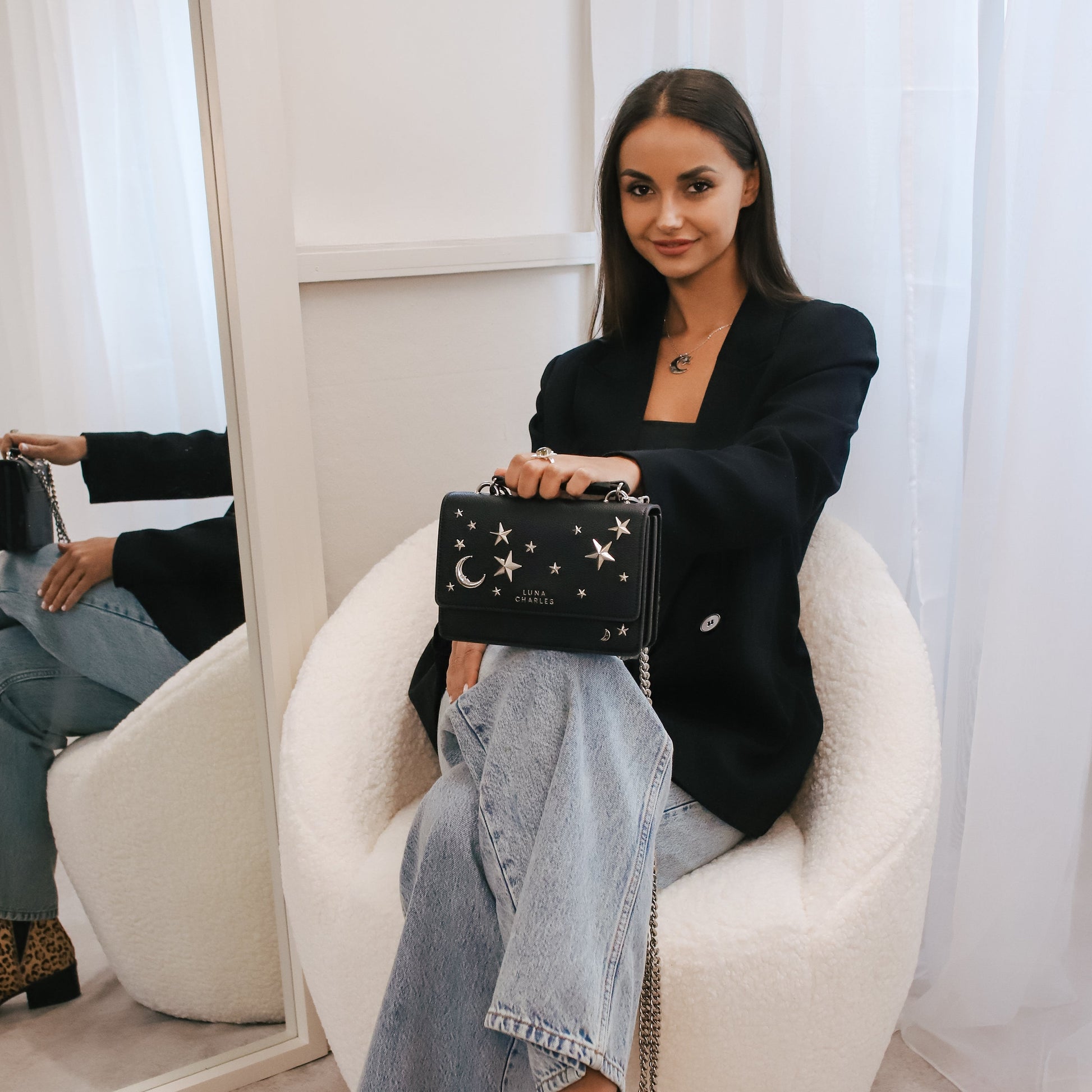 The perfect partner for a day of shopping or a night on the town, the Nova bag offers endless styling opportunities. Crafted using the finest vegan leather, embellished with stars and moons, the Nova is unique and versatile. It’s the perfect sized crossbody bag to hold all of your essentials and complete your 'out of this world' look.