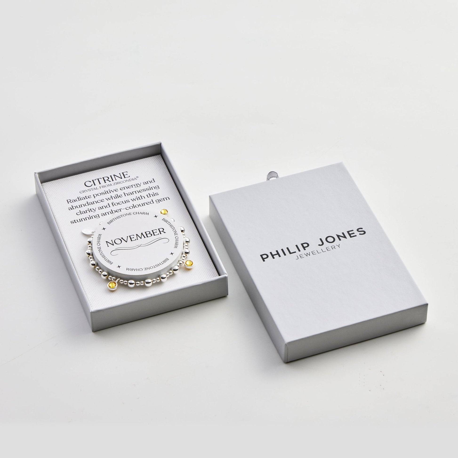 November (Citrine) Birthstone Stretch Charm Bracelet with Quote Gift Box