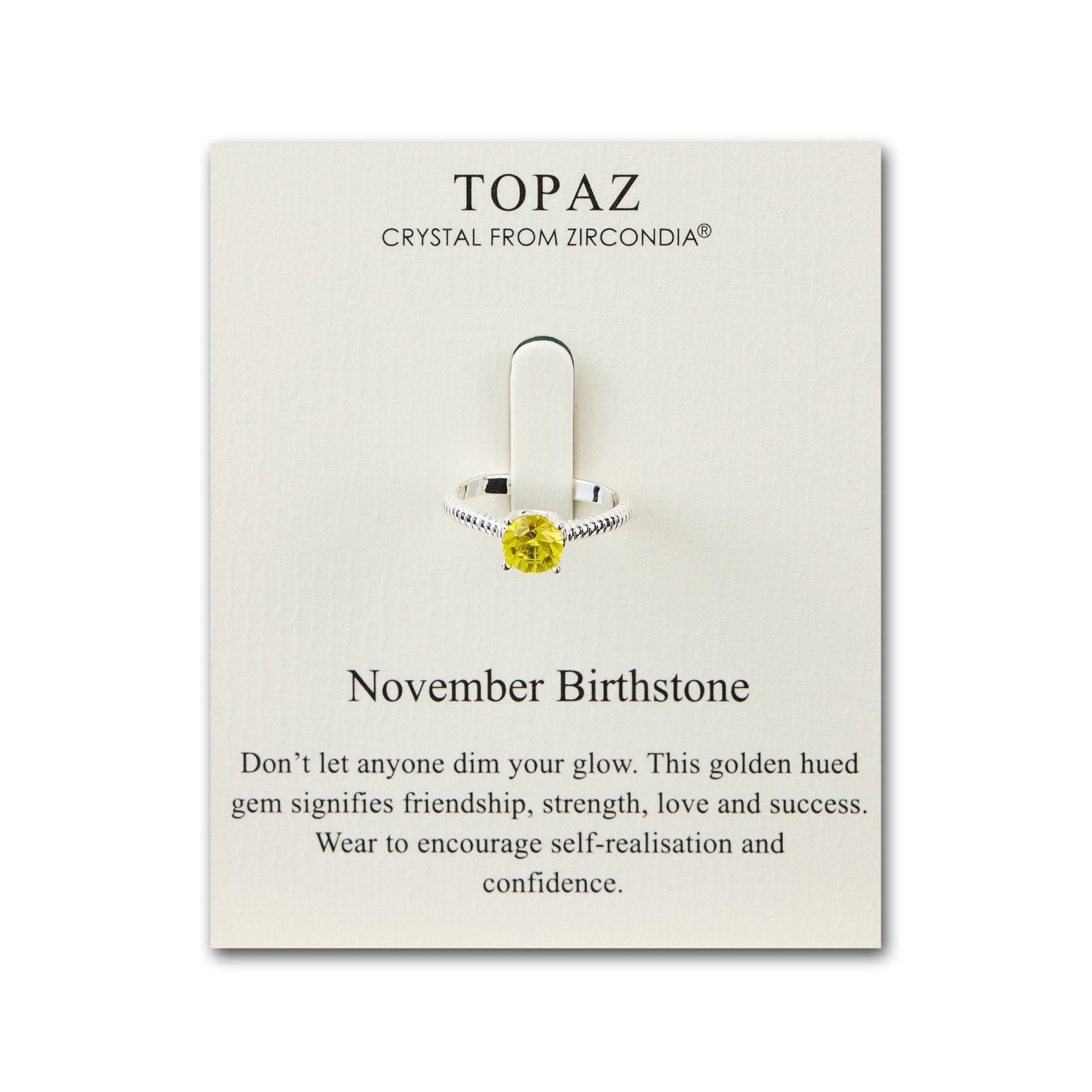 November (Topaz) Adjustable Birthstone Ring Created with Zircondia® Crystals