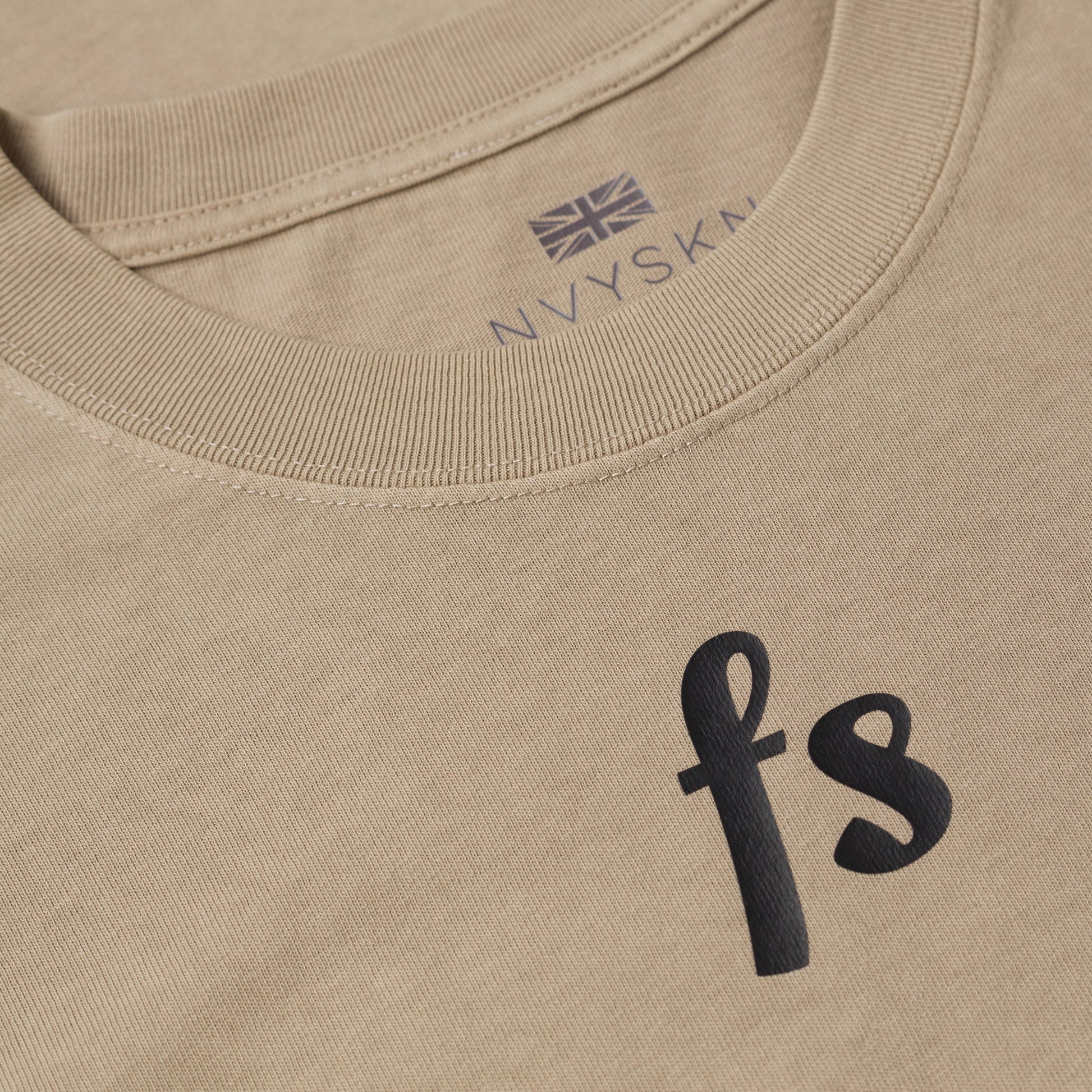 With an oversized, boxy cut, dropped shoulders, and wide twin-stitched neck ribbing, it’s built to be worn your way—on its own or layered, dressed up or down. The minimalist "fs" chest hit and arched back print keep things clean while still nodding to the strength behind the story.
