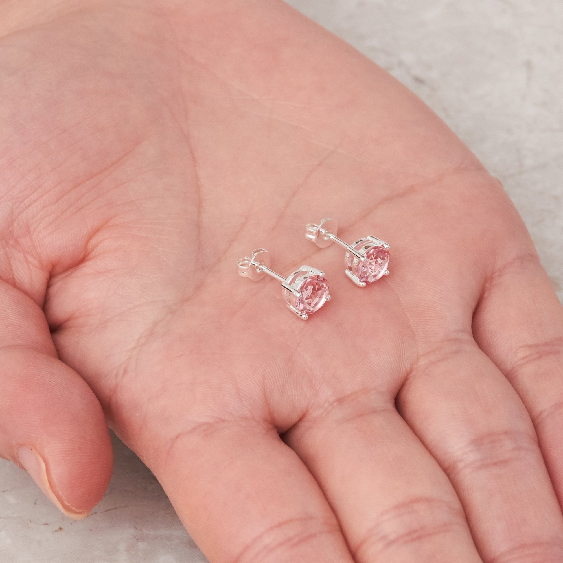 These Philip Jones October (Tourmaline) Birthstone Earrings feature silver plated brass alloy, a form of metal, and stud earring dimensions of 6mm (H) x 6mm (W). The 4 prong stone setting and butterfly closure type give these earrings a total weight of 1.2g. The stones are Crystals from Zircondia® in a round shape and Tourmaline colour, each being 6mm in size, with a quantity of 2.
