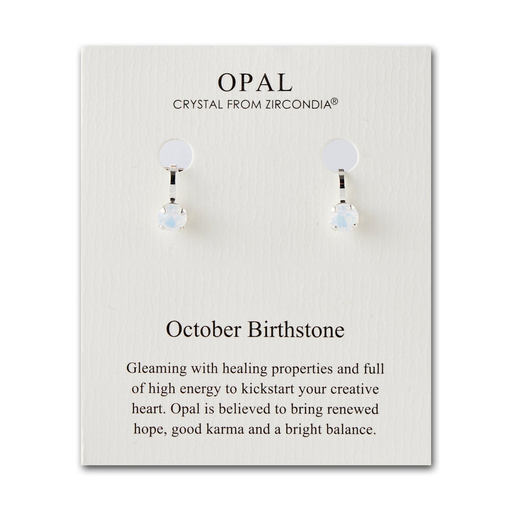 October (White Opal) Birthstone Clip On Earrings Created with Zircondia® Crystals
