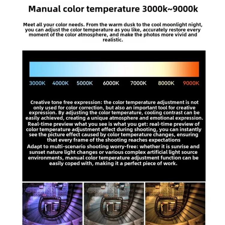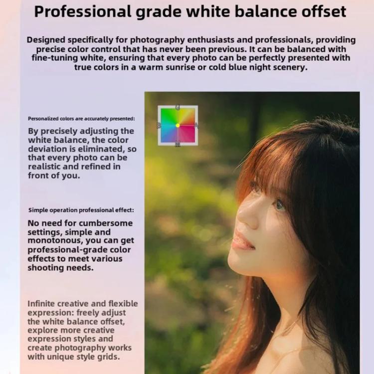 9. Professional-level white balance shift is designed for photography enthusiasts and professionals, providing unprecedented color precision control.
