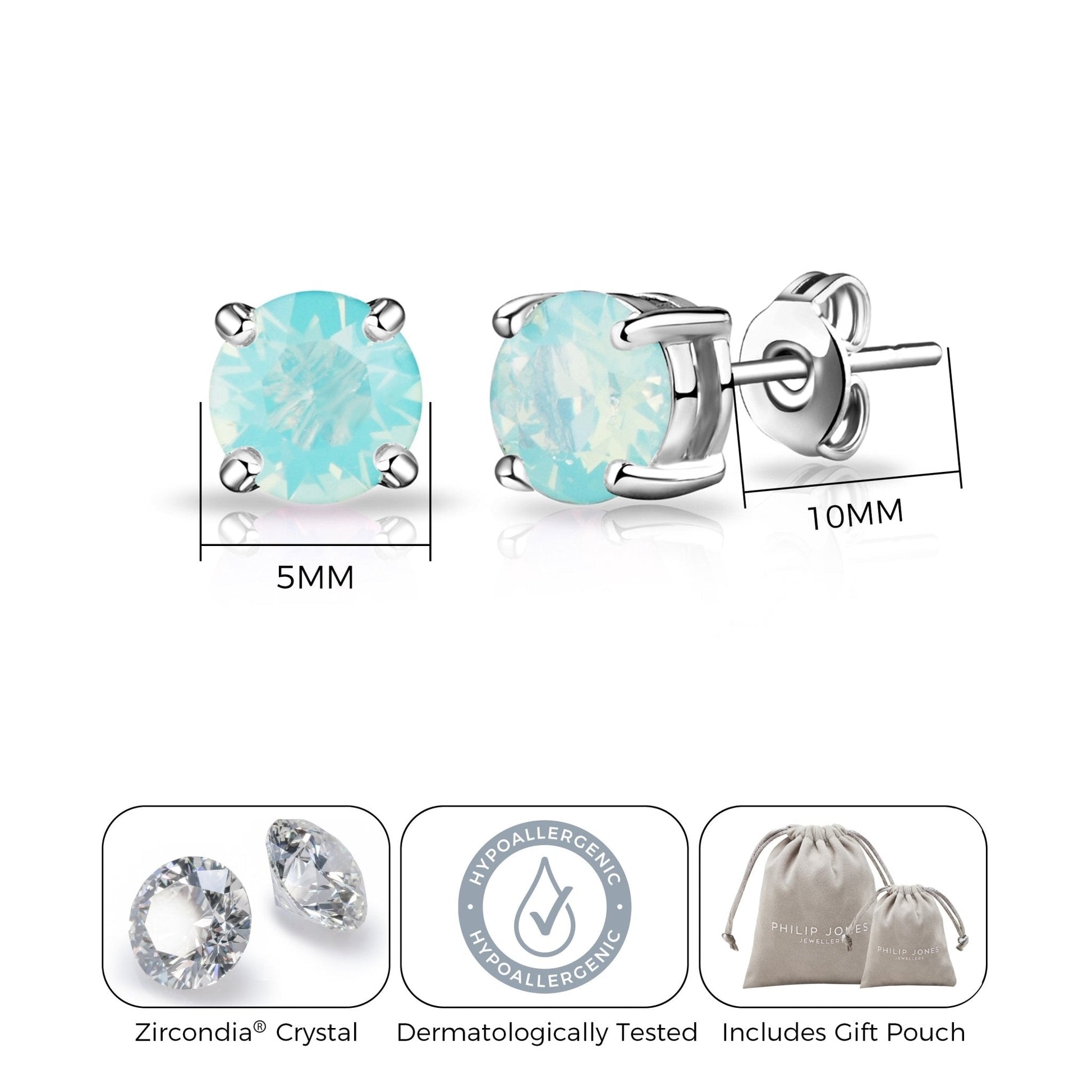 Philip Jones offers these Pacific Green earrings crafted with Silver Plated Brass Alloy and featuring a 4 Prong setting for 4mm Crystals from Zircondia®. The stud earrings measure 5mm x 5mm, weigh 1g, and come as a pair. Closure type is Butterfly.