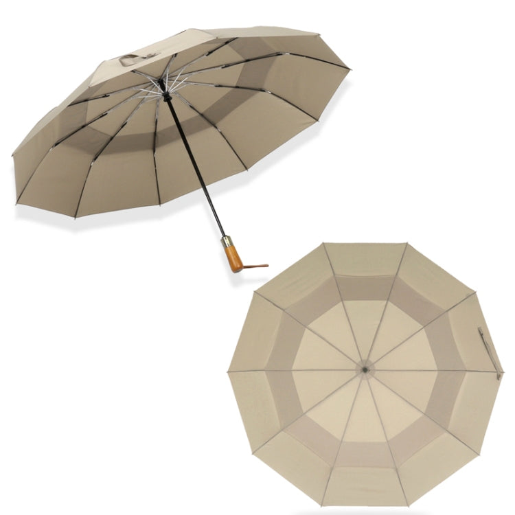 PARACHASE Ten-bone Double-layer Large Windproof Business Automatic Folding Umbrella(Khaki)