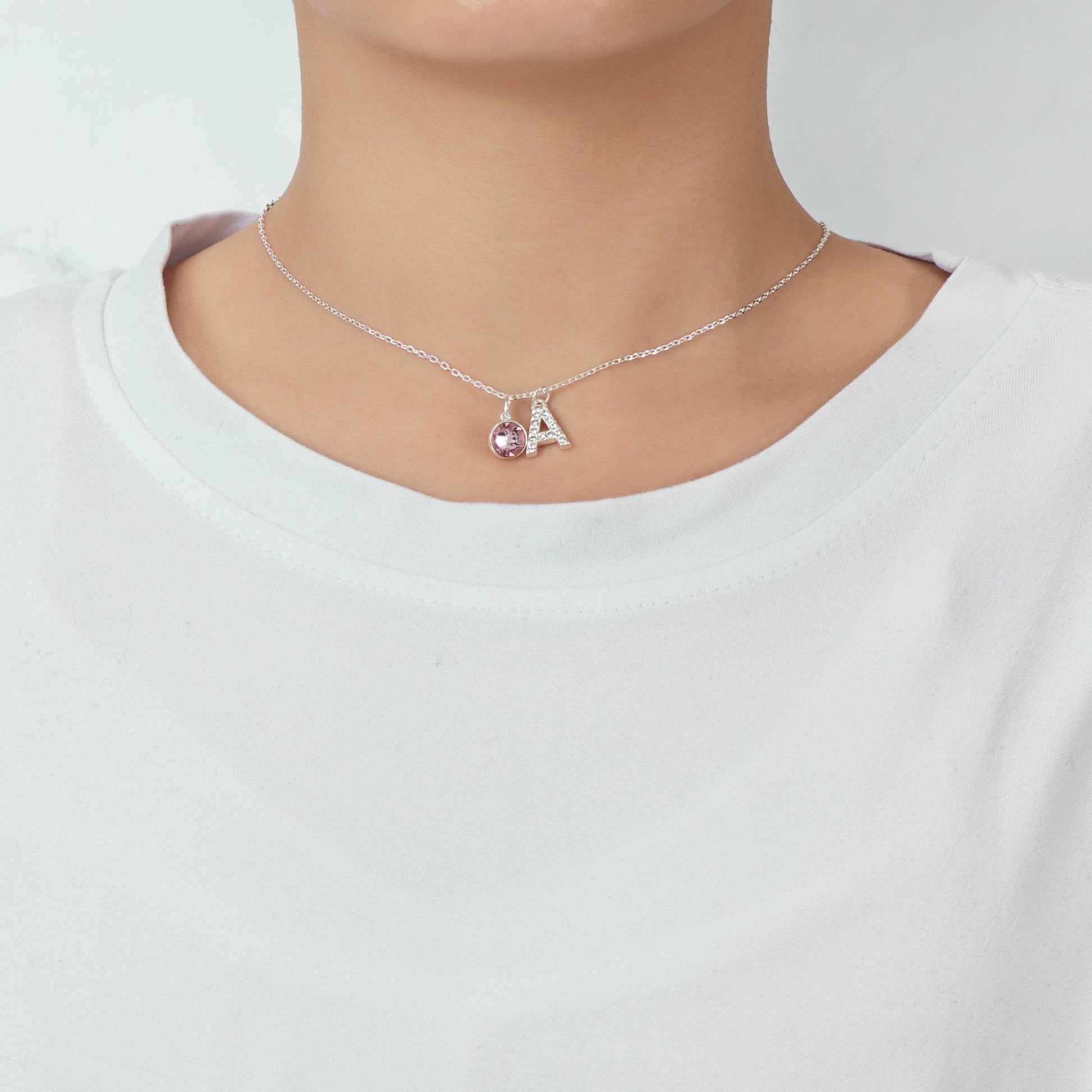 Pave Initial A Necklace with Birthstone Charm Created with Zircondia® Crystals