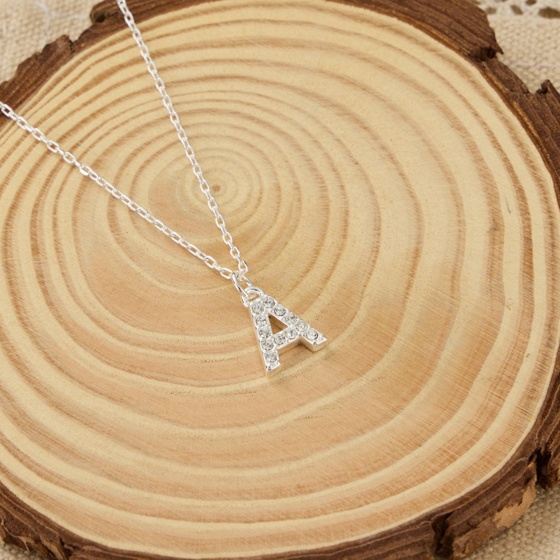 Elevate your look with our Pave Initial Necklace! Adorned with sparkling crystals from Zircondia®, this silver plated necklace is hypoallergenic and perfect for everyday wear. It features a delicate pendant with the letter A, adding a personal touch. Comes with a gift pouch for easy gifting.