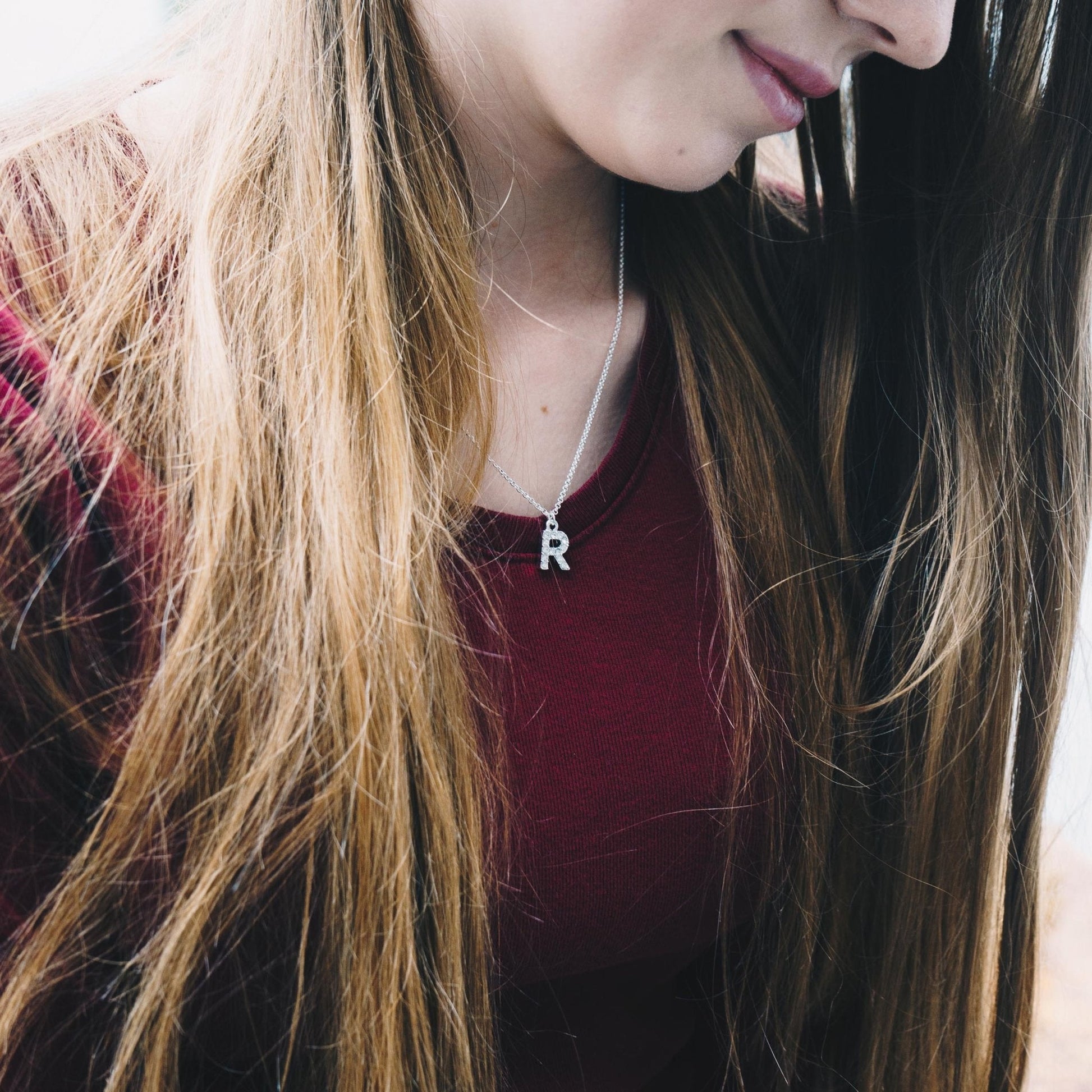 Pave Initial Necklace Letter R Created with Zircondia® Crystals