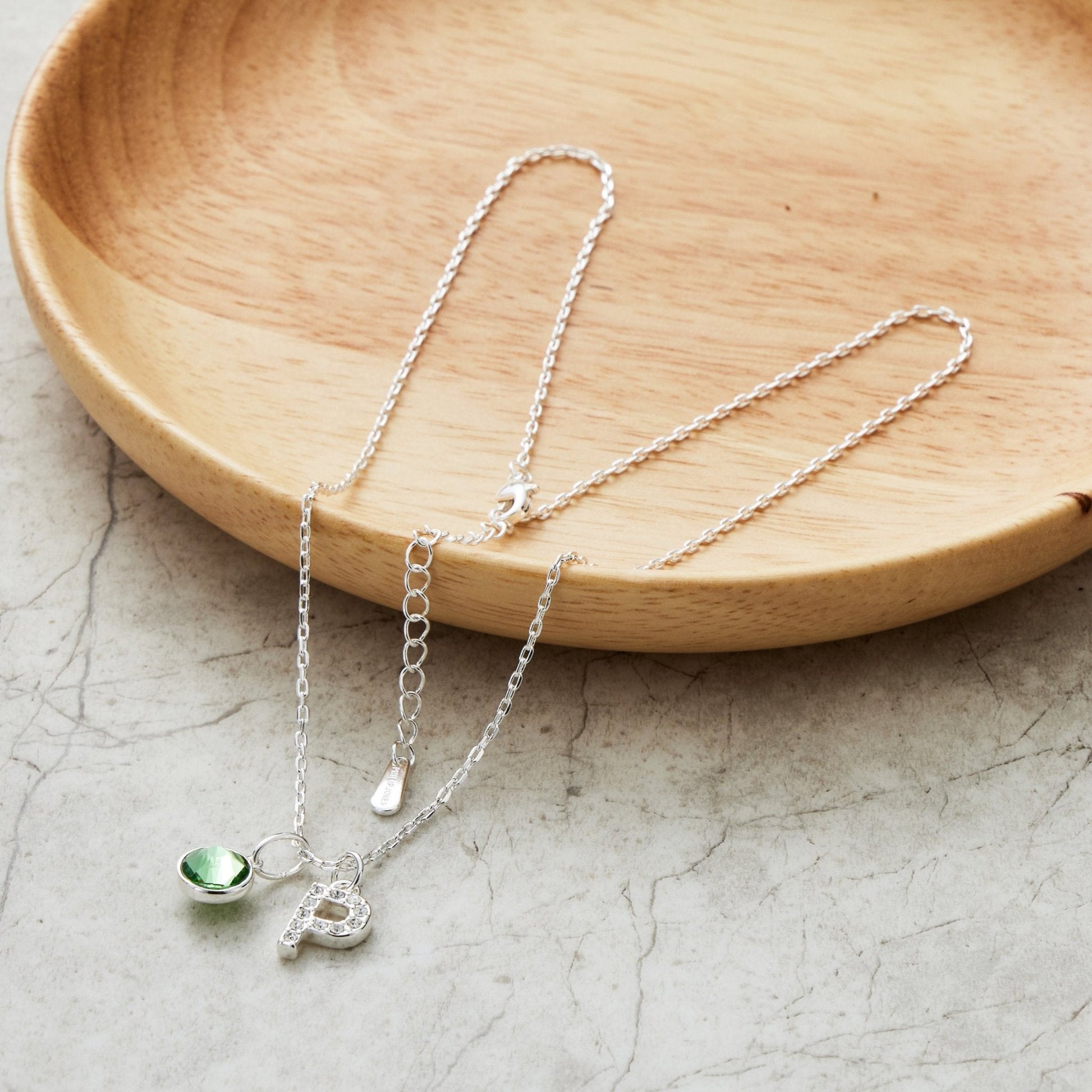"Add some sparkle to your style with our Pave Initial P Necklace, featuring a birthstone charm created with Zircondia® Crystals. This silver-plated necklace is hypoallergenic and perfect for everyday wear. The 13mm pendant and 43cm chain are designed to catch the eye, while the lobster claw closure offers secure wear. Packaged in a gift pouch, it makes a thoughtful present for yourself or a loved one."