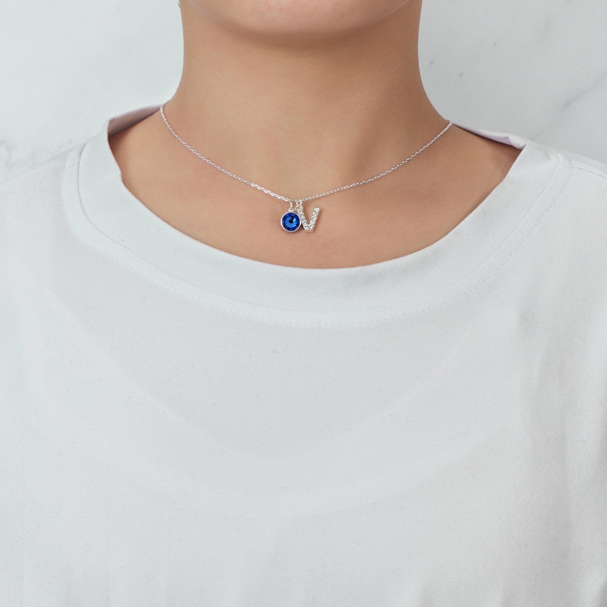 Pave Initial V Necklace with Birthstone Charm Created with Zircondia® Crystals