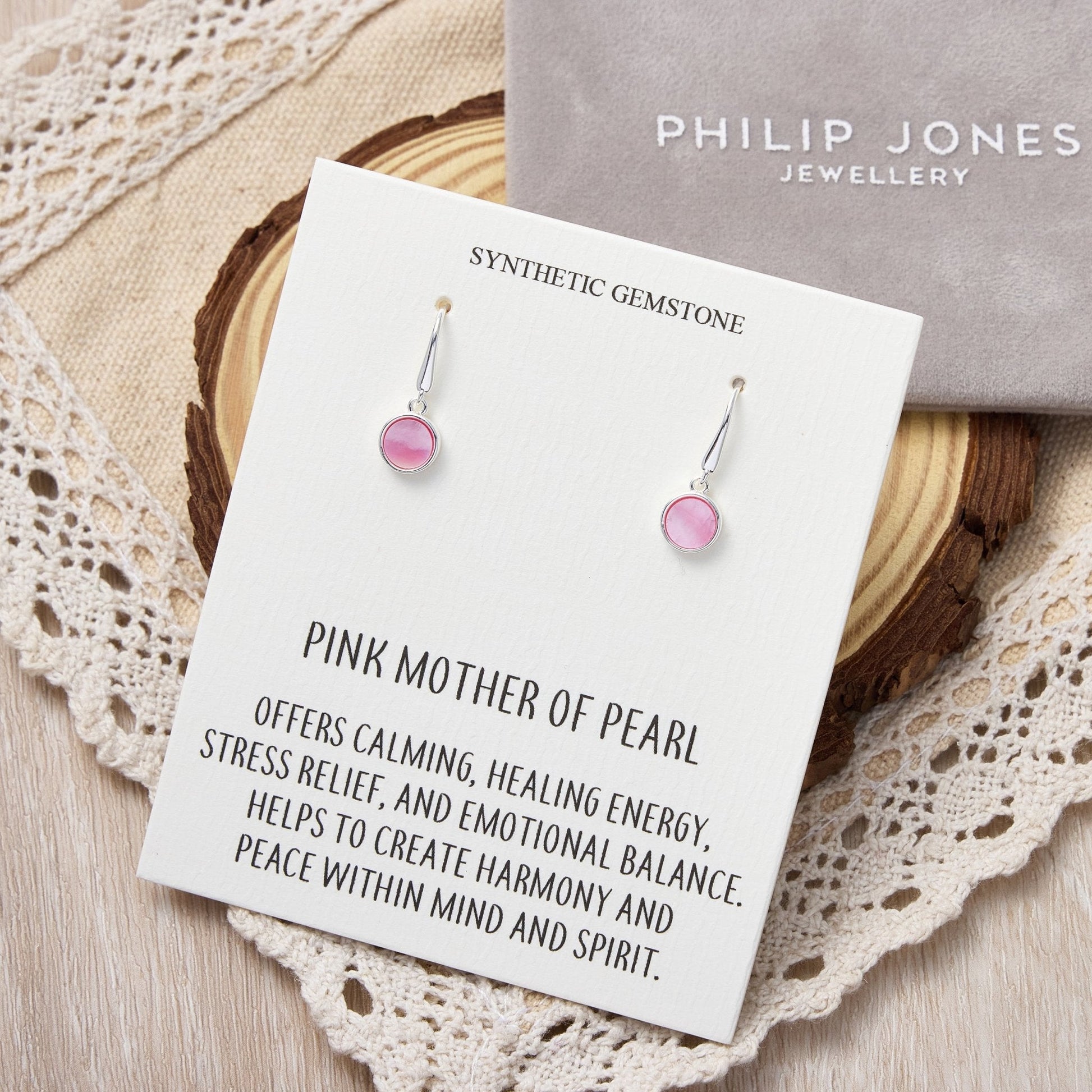 Pink Mother of Pearl Drop Earrings with Quote Card