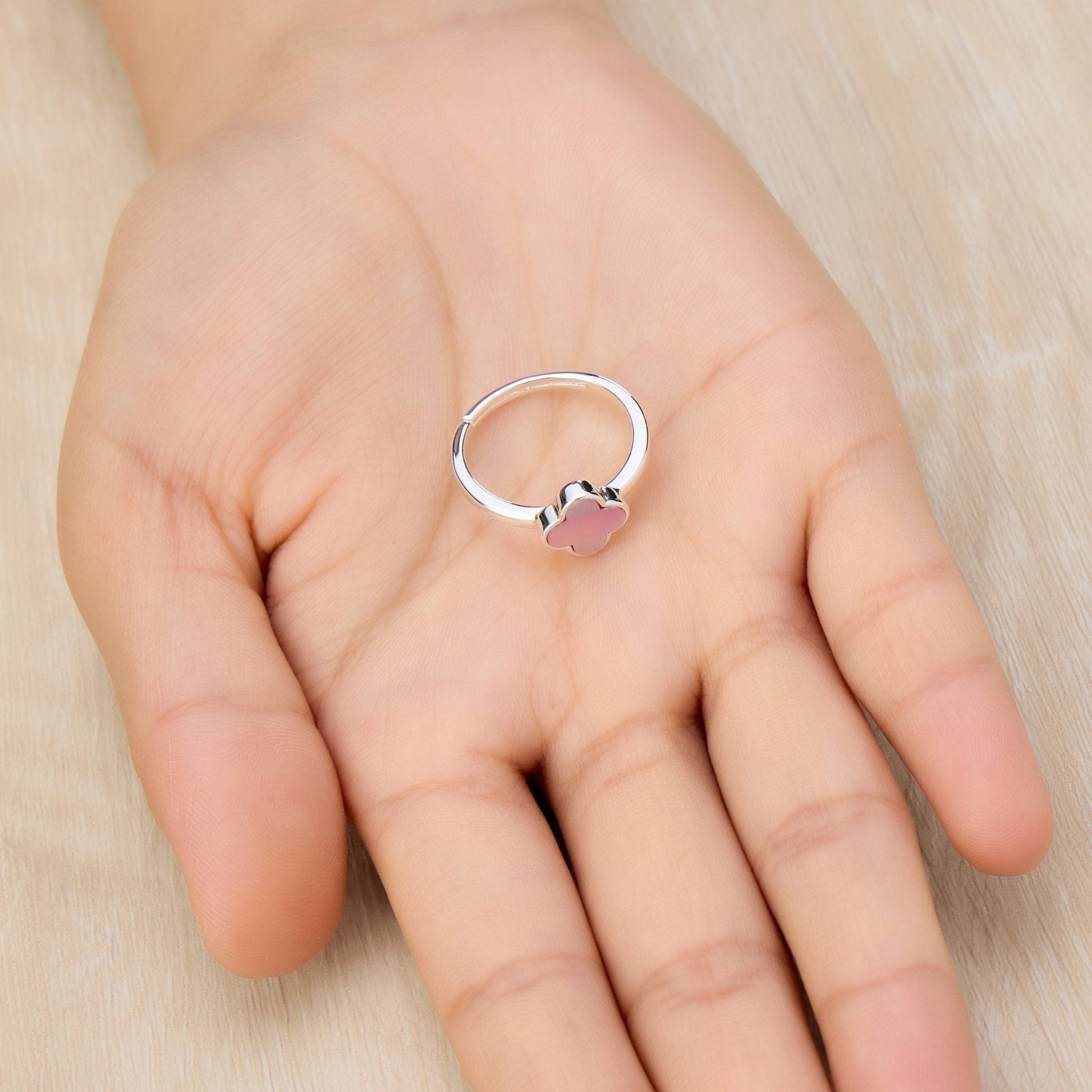 Pink Mother of Pearl Gemstone Adjustable Clover Ring