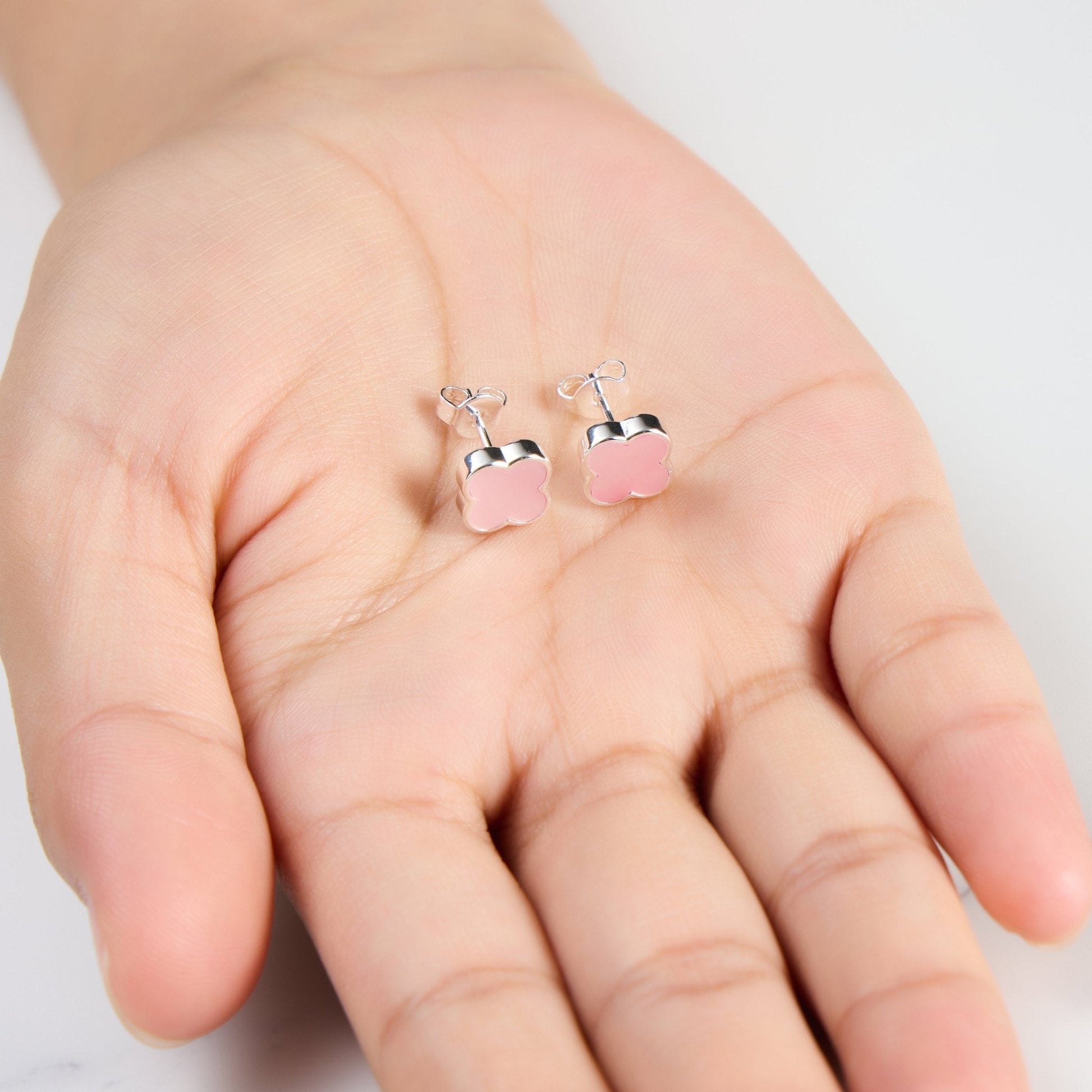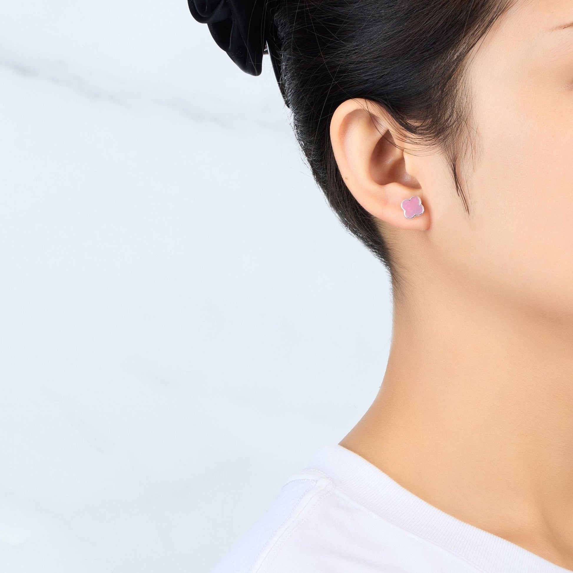 Elevating your style with the finest Pink Mother of Pearl Gemstone Clover Earrings. Made with genuine mother of pearl and silver plating, these stud earrings will be the perfect addition to your jewelry collection. The stunning details, hypoallergenic quality, and thoughtful packaging make these earrings a must-have.