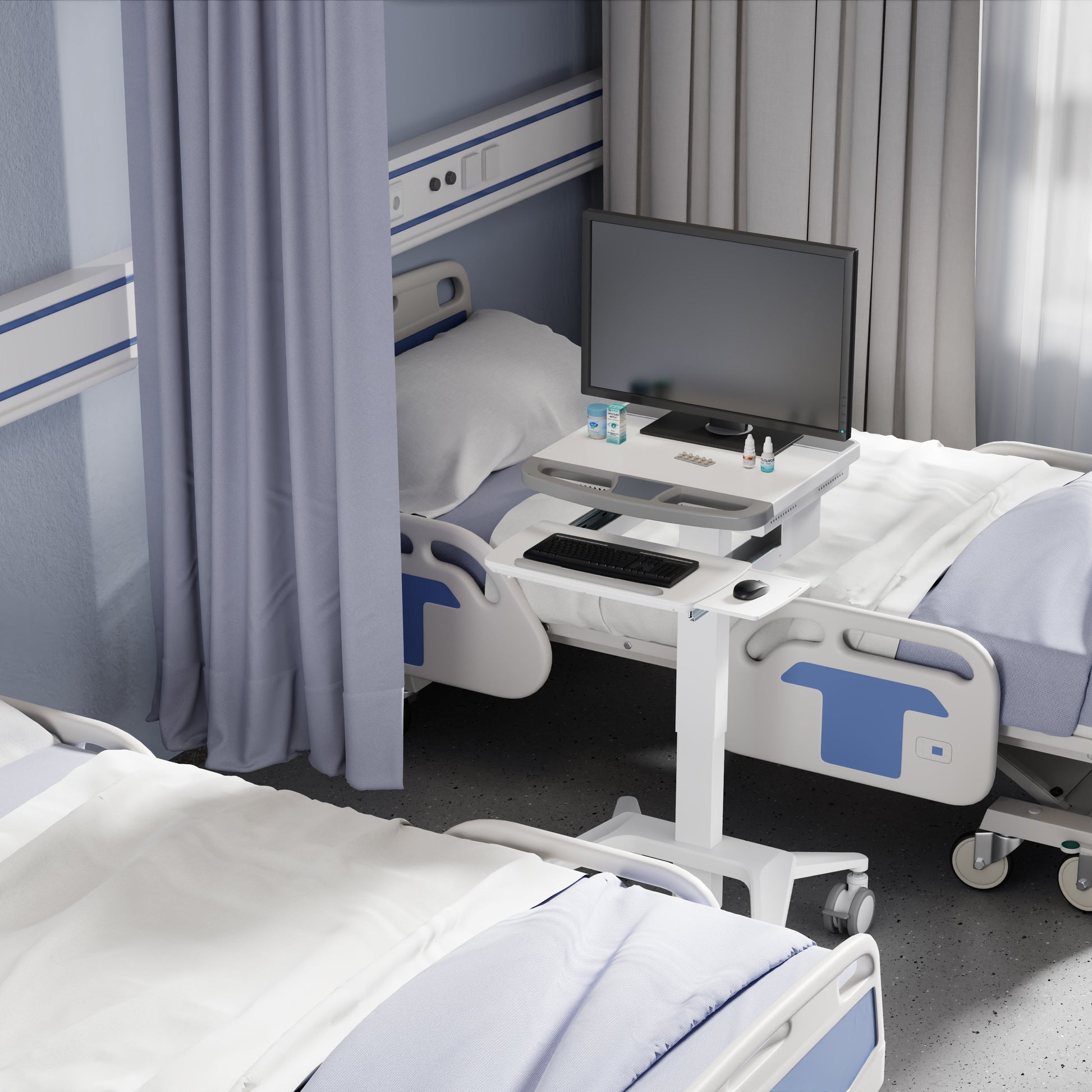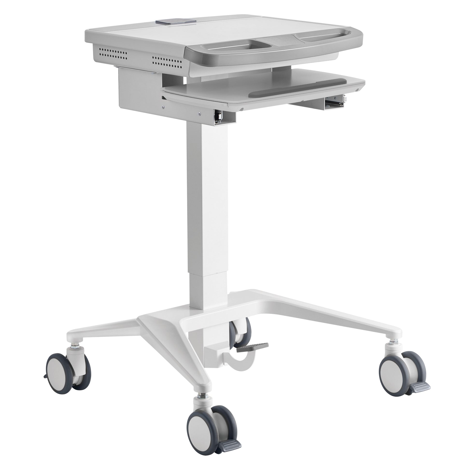 The ProperAV Mobile Medical Trolley Cart is designed to meet the unique needs of different caregivers. Smooth height adjustment with foot pedal for effortless standing/sitting transition. 4 quiet casters with stoppers provide exceptional mobility. The keyboard tray is included with a retractable mouse tray for easy typing.