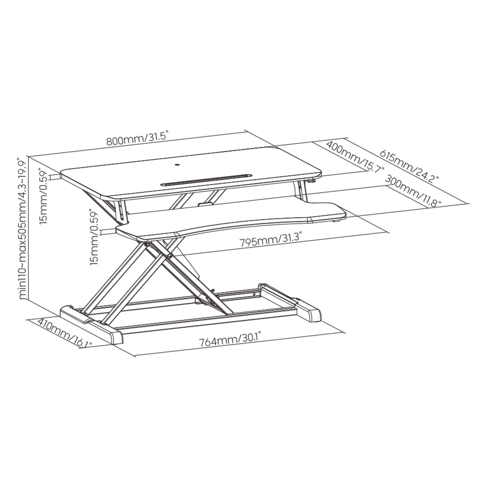 Main Work Surface Dimensions 800 x 400mm