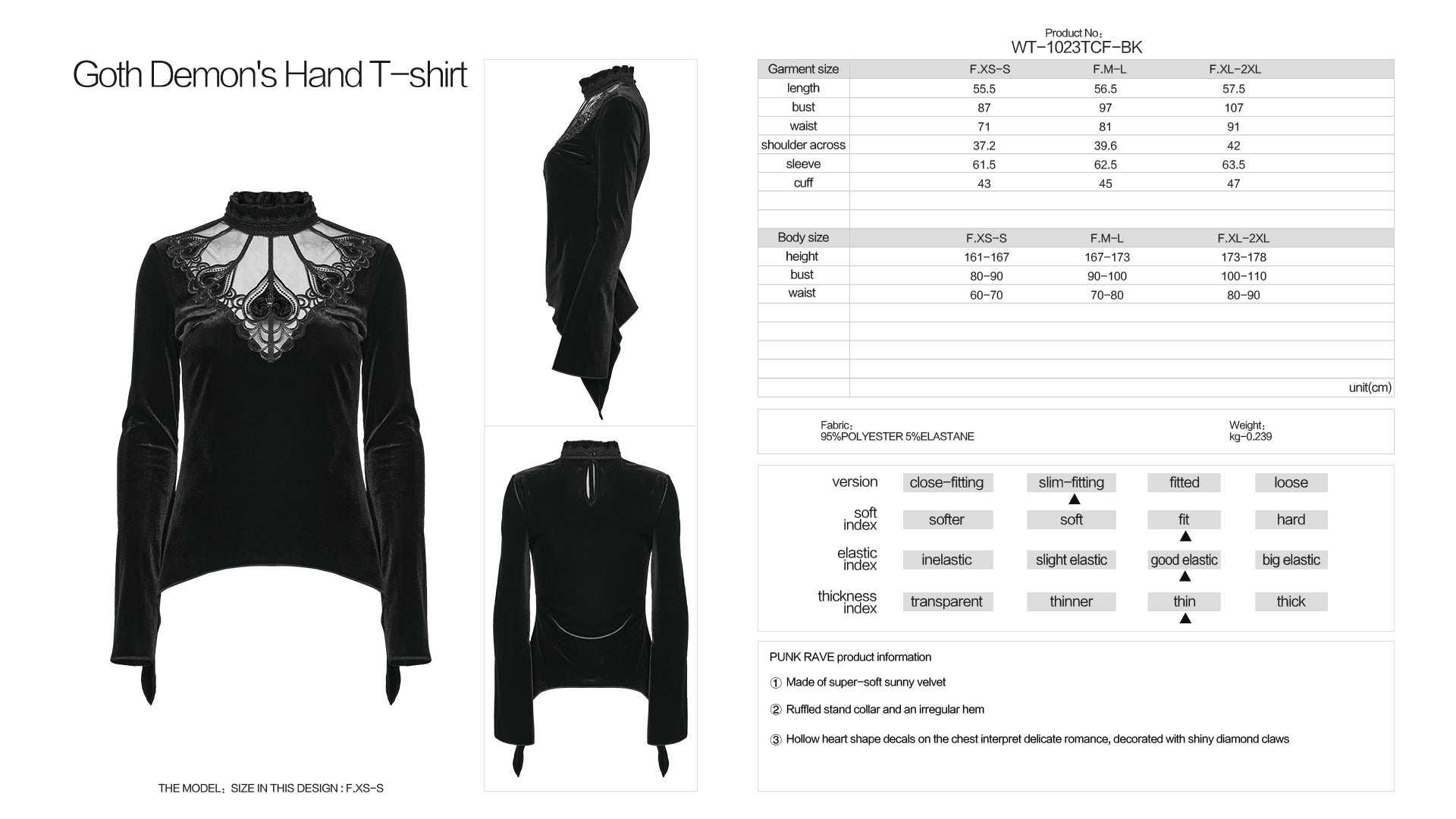 Summon dark romance with the Punk Rave Belladonna Demon’s Hand Velvet T-Shirt in Red— a gothic dream sculpted in soft, sun-kissed velvet.