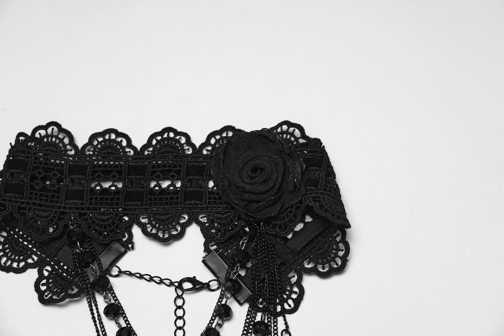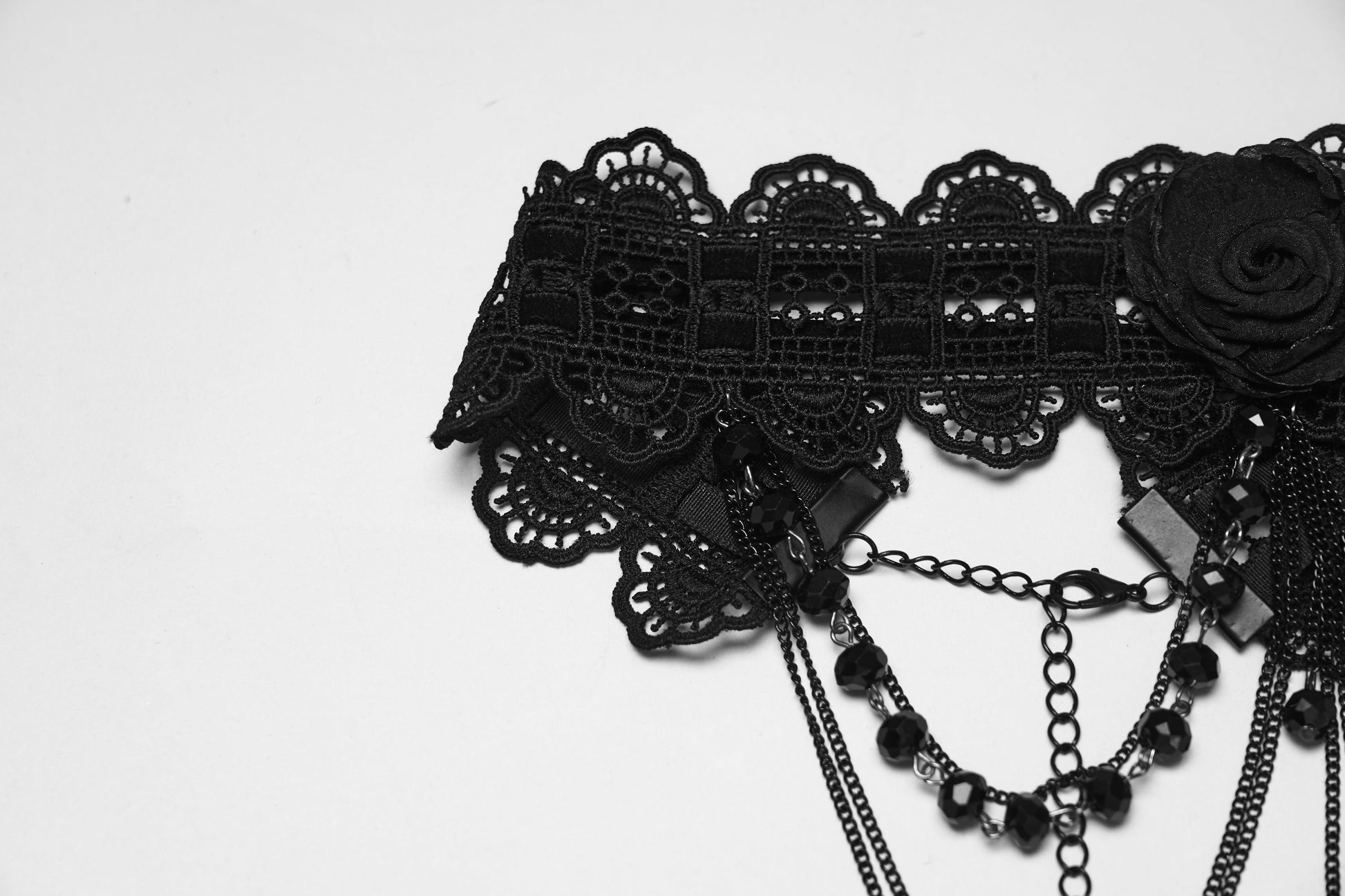 - Delicate black lace choker with rose centrepiece