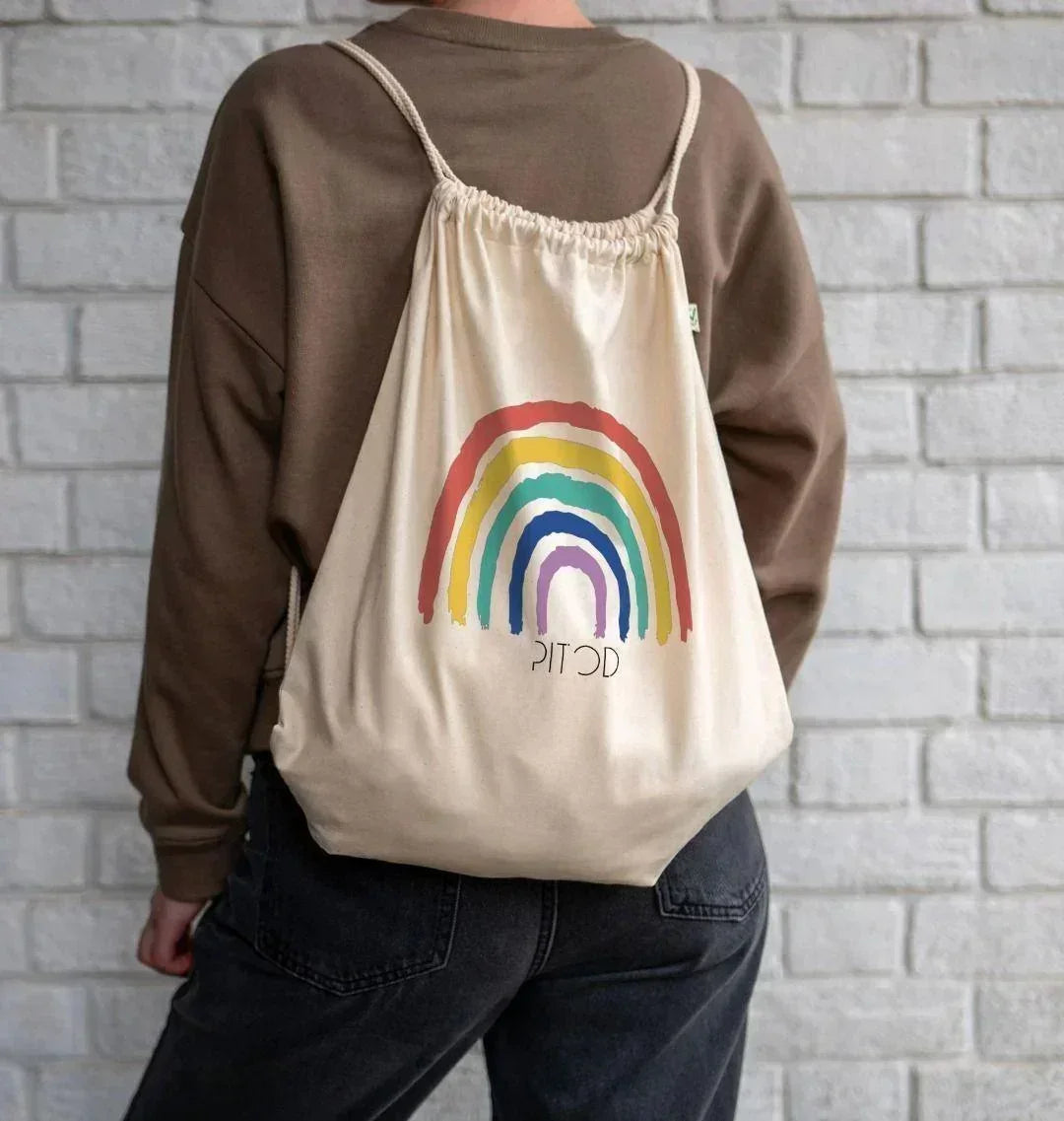 Elevate your everyday essentials with Pitod’s Rainbow Organic Cotton Drawstring Bag, a vibrant celebration of diversity, sustainability, and style. Featuring Pitod's iconic rainbow design, this bag symbolizes inclusivity and "The Freedom of Being You." Crafted from 100% GOTS Certified Organic Cotton, it’s an eco-friendly, lightweight, and durable accessory perfect for daily adventures, gym trips, or casual outings. Designed for those who value ethical fashion and bold self-expression, this drawstring bag merges functionality with a meaningful statement, making it a must-have for anyone looking to carry their values in style.