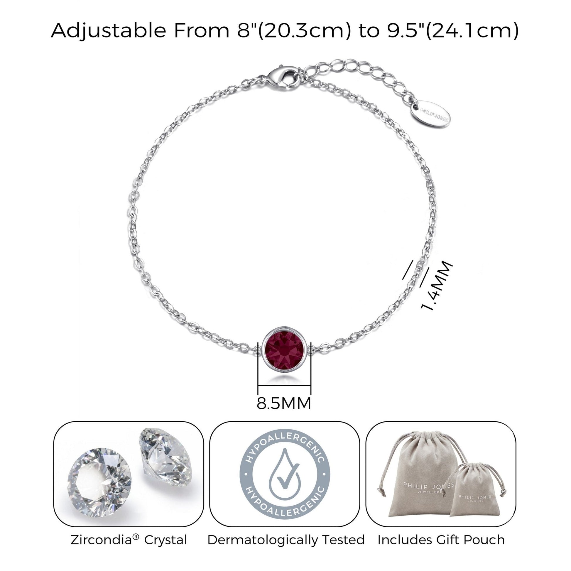 Experience the sparkle and beauty of our Red Crystal Anklet! Created with genuine Zircondia® Crystals, this silver plated anklet is hypoallergenic, making it safe for all skin types. The 20.3cm length with 3.8cm extender ensures a comfortable fit, and the lobster claw closure keeps it secure. Perfectly packaged in a 10cm x 9cm gift pouch.