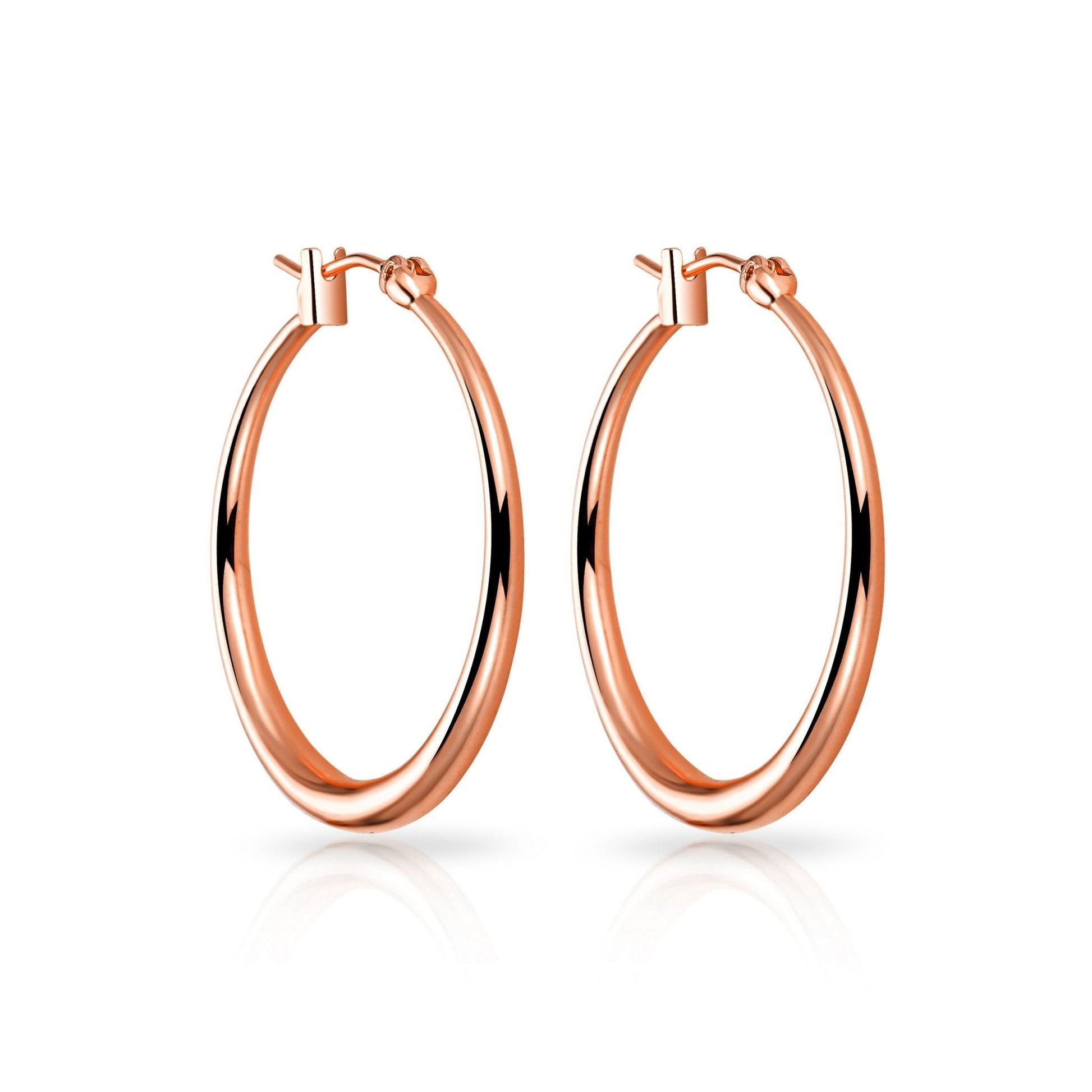 Indulge in effortless elegance with our Rose Gold Plated 30mm Hoop Earrings from Philip Jones. The high polished finish exudes luxury while the hypoallergenic design ensures comfort. These versatile hoops are perfect for any occasion and make a stylish addition to any outfit. Packaged in a beautiful gift pouch, they are also the perfect present for a loved one.